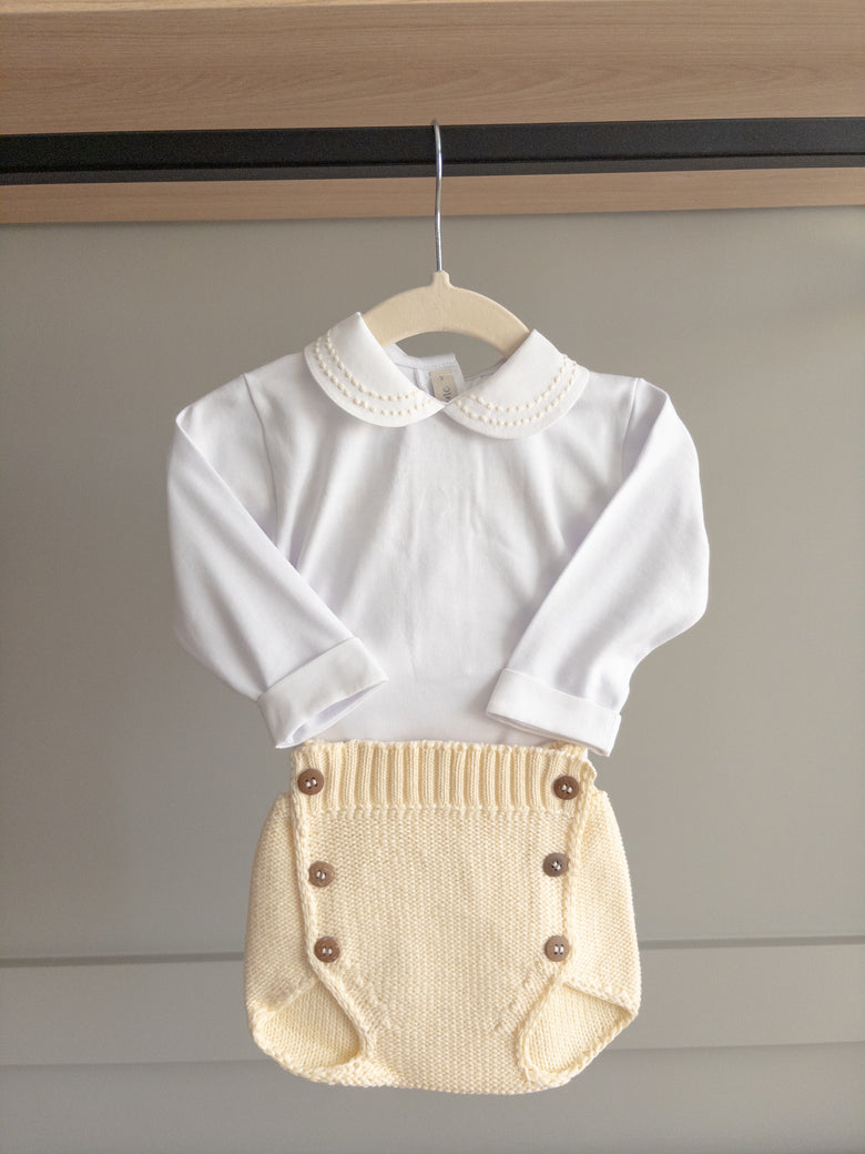 Paired with the "Lua" bodysuit in soft yellow tones, it’s the perfect look—full of style and delicacy. Ideal for special occasions or simply to add a sweet, charming touch to your little princess’s day.