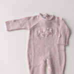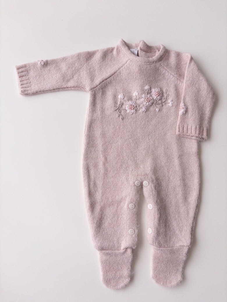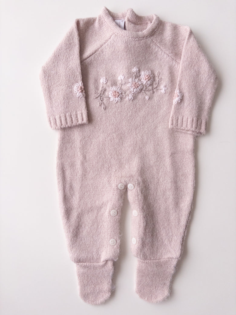 The soft jumpsuit is cozy and perfect for keeping your baby warm and comfortable. Made from a soft, gentle-to-the-touch fabric, it offers extra comfort for your baby’s sensitive skin, featuring a delicate hand-embroidered floral design. Ideal for colder days, this jumpsuit is a charming addition to your little one’s wardrobe.