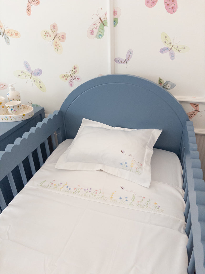 With a sophisticated finish and handcrafted embroidery, it combines beauty and durability, ensuring more peaceful nights and a charming look for the nursery. The fabric is breathable, hypoallergenic, and easy to wash.