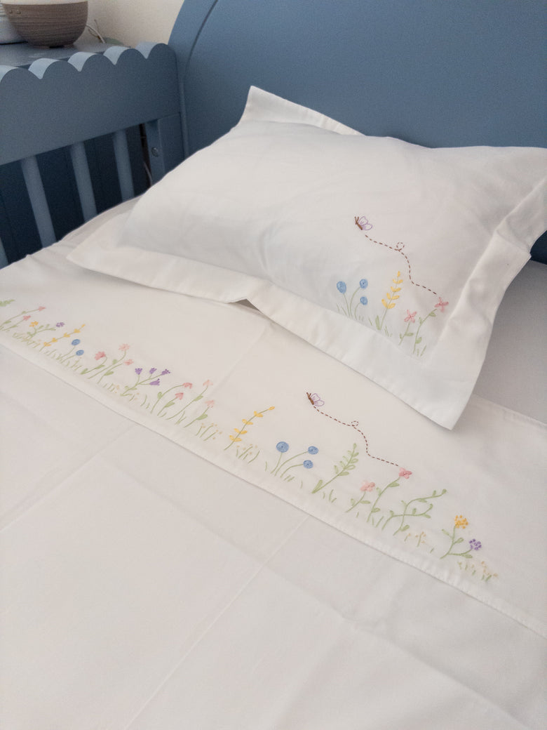 1 embroidered flat sheet (95 cm x 1.55 m)