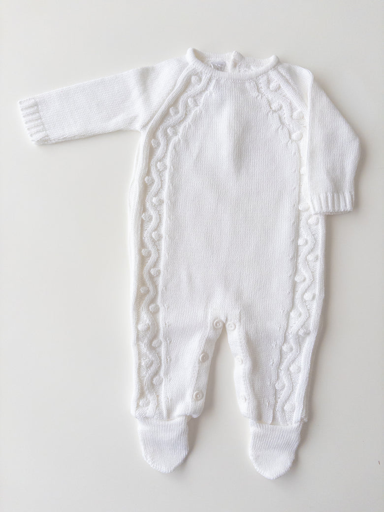 Knitted with a breathable weave, this romper is designed to provide the comfort your baby deserves. A charming piece to add to your little one’s wardrobe, sure to delight with its timeless beauty. It’s a perfect blend of style and functionality—ideal for both special moments and everyday adventures.