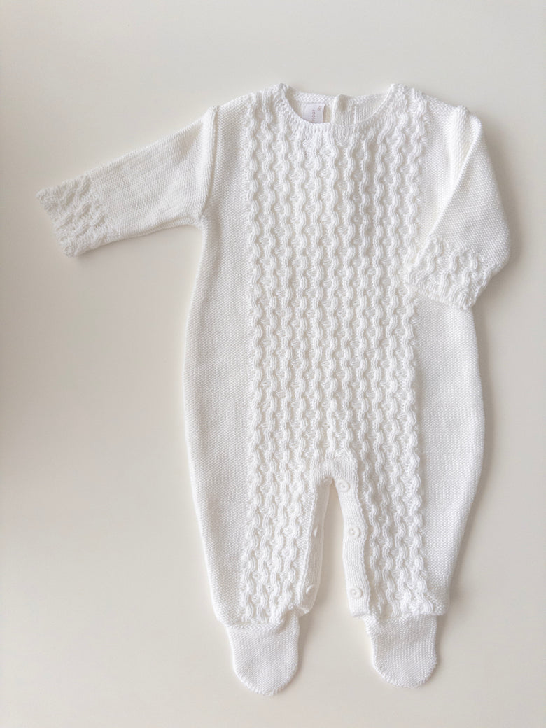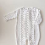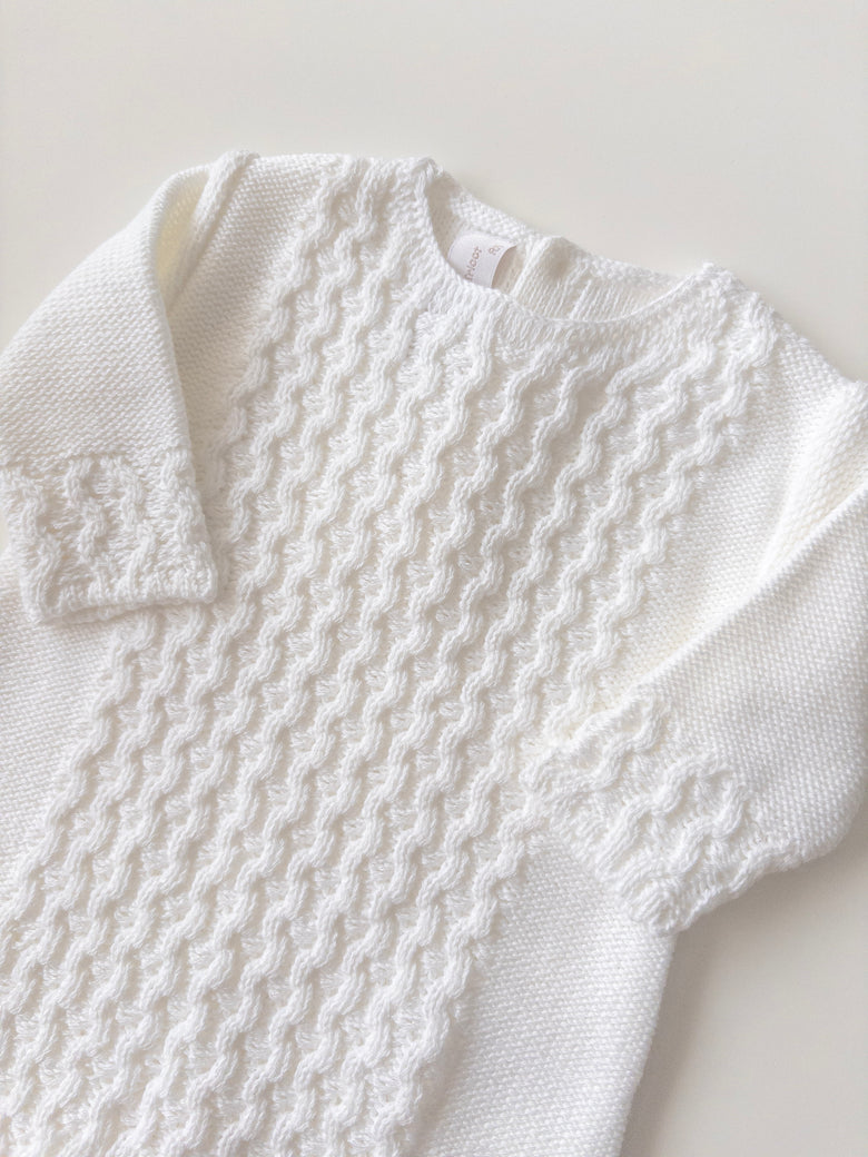 Knitted with a breathable weave, this romper is designed to provide the comfort your baby deserves. A charming piece to add to your little one’s wardrobe, sure to delight with its timeless beauty. It’s a perfect blend of style and functionality—ideal for both special moments and everyday adventures.
