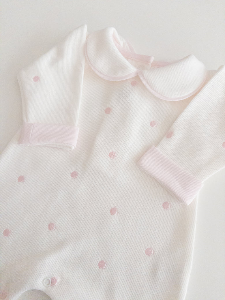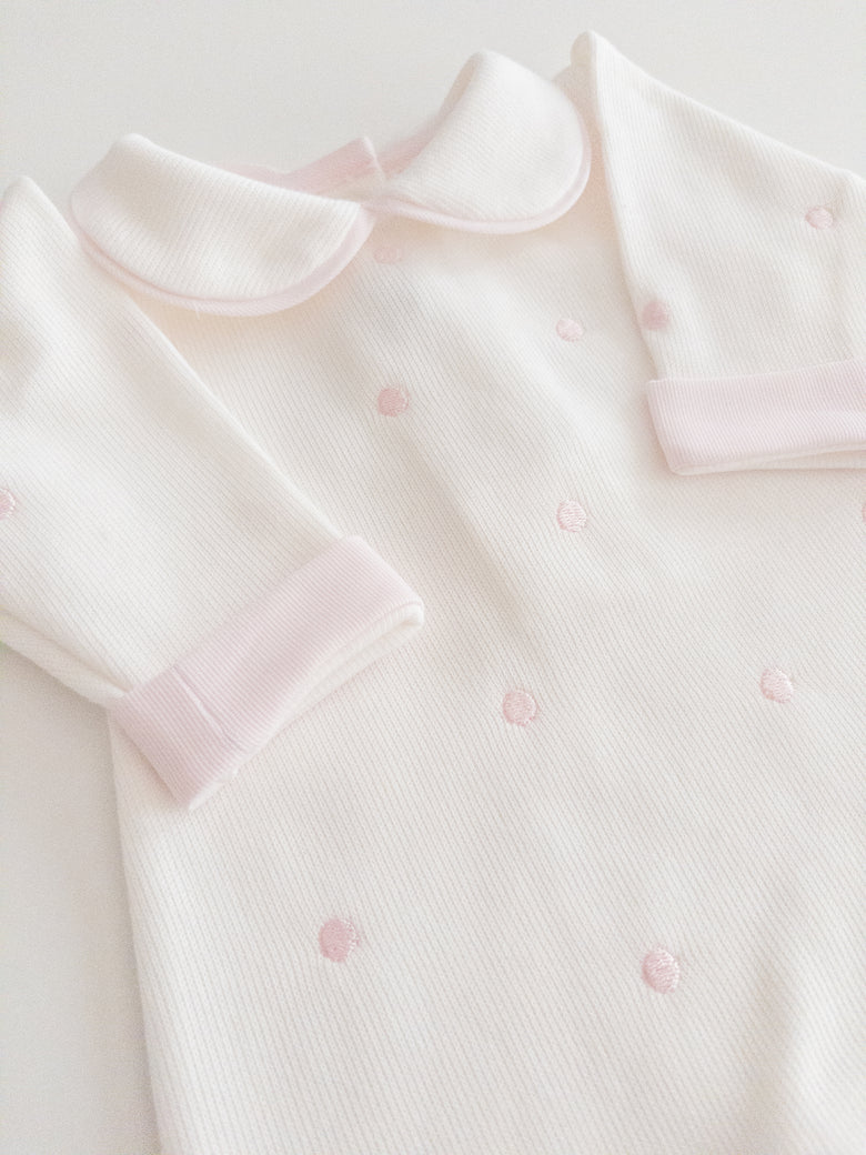 Cotton romper delicately embroidered with tiny dots for a sweet, charming touch.