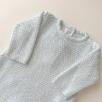 Knitted with a breathable weave, this romper is designed to provide the comfort your baby deserves. A charming piece to add to your little one’s wardrobe, sure to delight with its timeless beauty. It’s a perfect blend of style and functionality—ideal for both special moments and everyday adventures.
