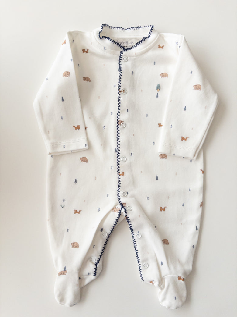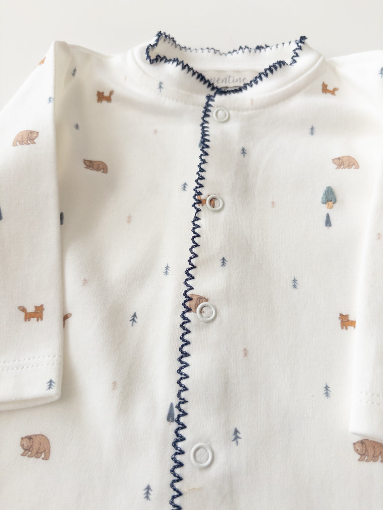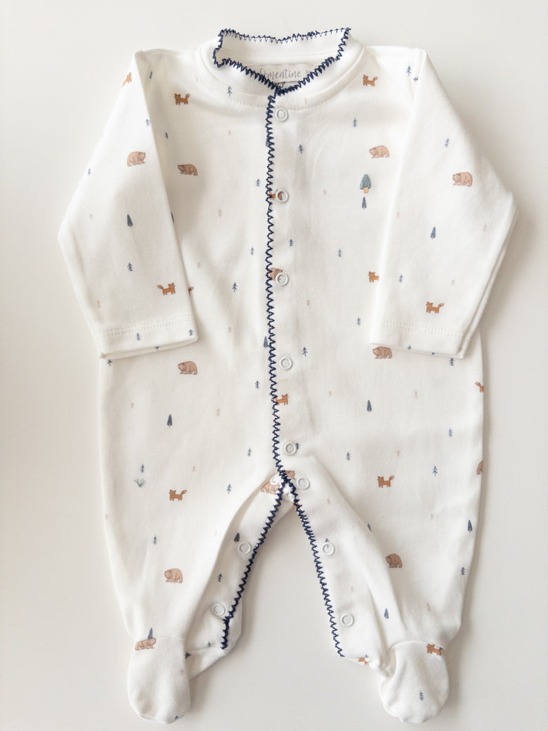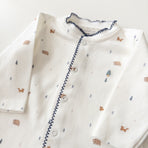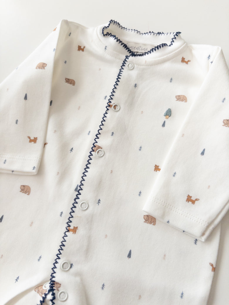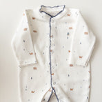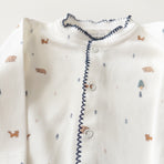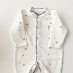 The Pima cotton jumpsuit is delicate and cozy—perfect for keeping your baby warm and comfortable. Made from a soft, smooth-touch fabric, it provides extra comfort for your baby’s sensitive skin. This charming piece is a beautiful addition to your little one’s wardrobe, featuring a delicate hand-embroidered detail that adds an extra touch of sweetness.