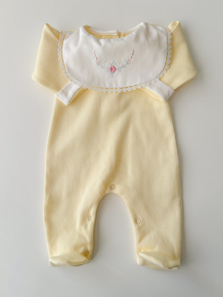 Beautifully decorated with floral embroidery that evokes purity and tenderness, every detail has been thoughtfully selected. This romper offers both comfort and style, ensuring your baby stays cozy and beautifully dressed. Perfect for unforgettable first impressions and cherished memories — an ideal choice for those very first moments.