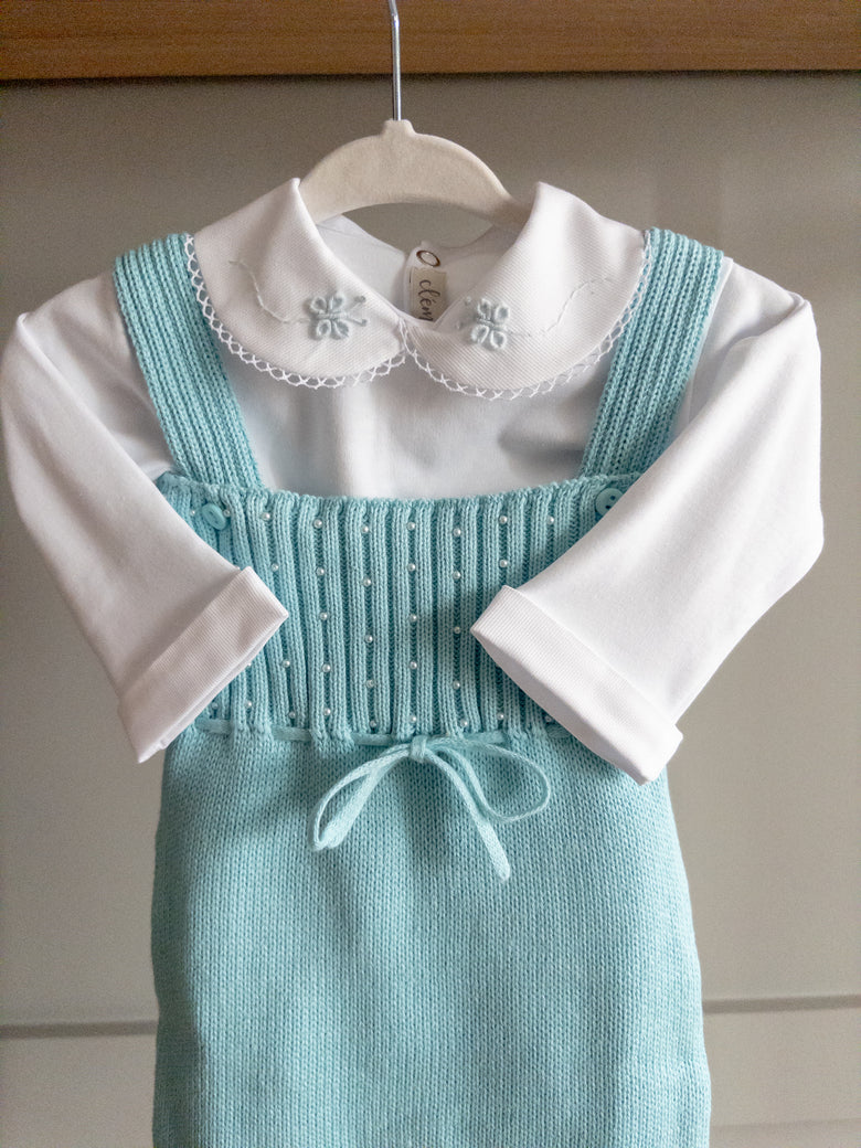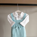 Made from soft, breathable knit fabric, it ensures total comfort for your little one. The design features delicate pearls adorning the front, along with a charming bow for an extra touch of sweetness.