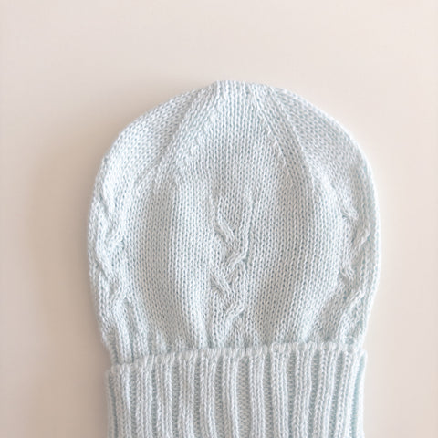 A perfect blend of softness and protection. Made from breathable, gentle knit, it softly hugs the baby’s head, keeping it warm and cozy on cooler days. Its aqua green tone adds a touch of tenderness and charm, making it a lovely accessory to complete your little one’s look with care. Ideal for special moments and everyday comfort.