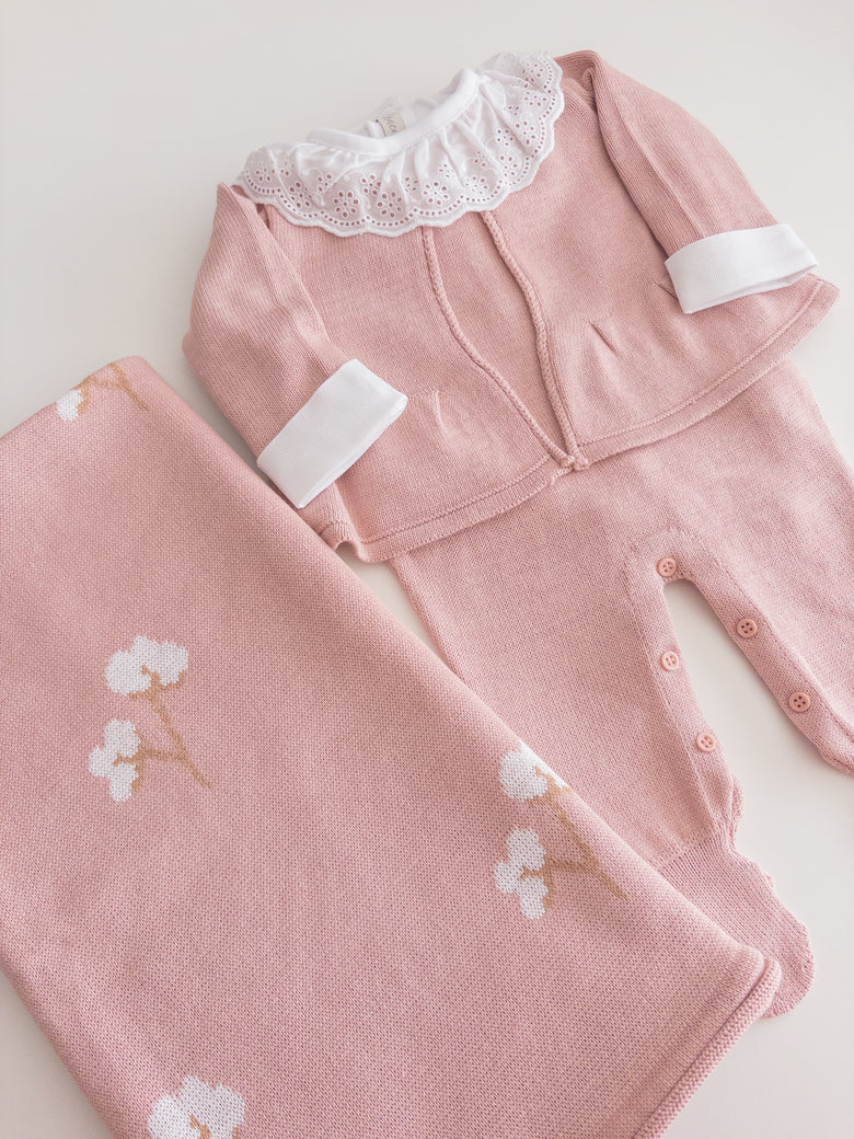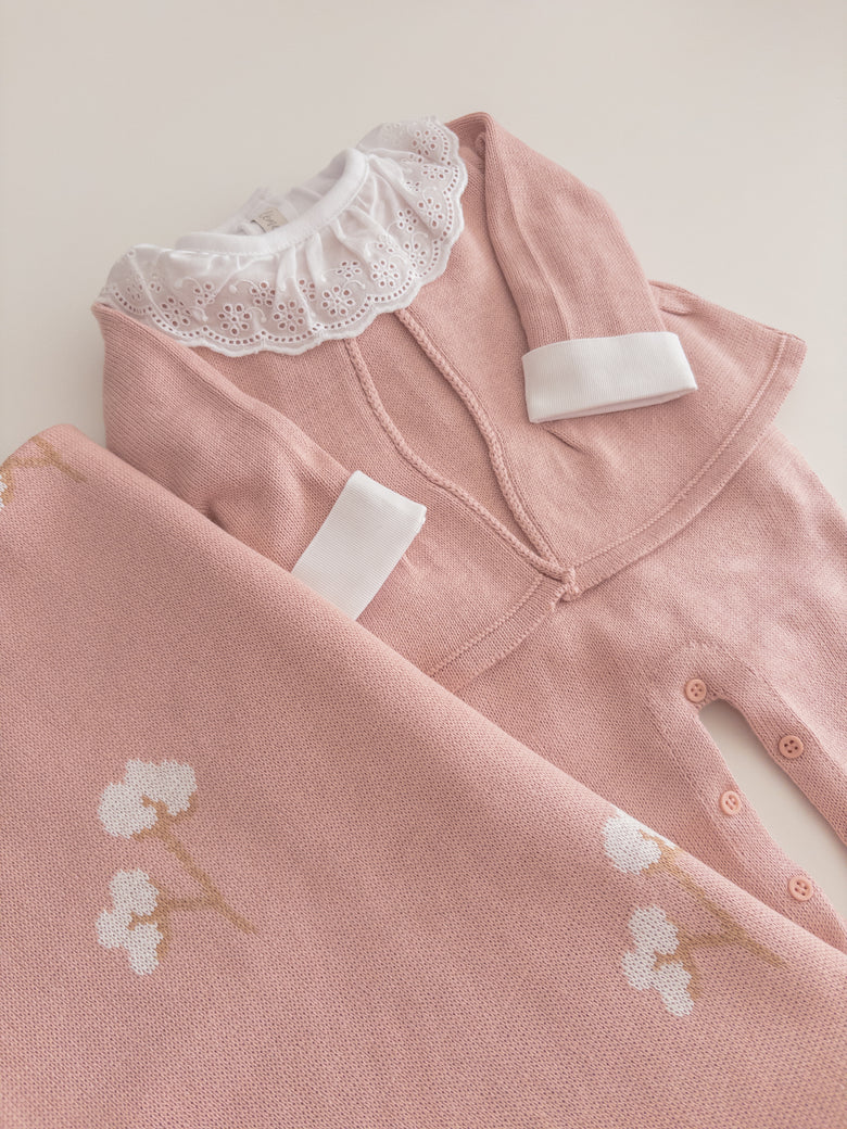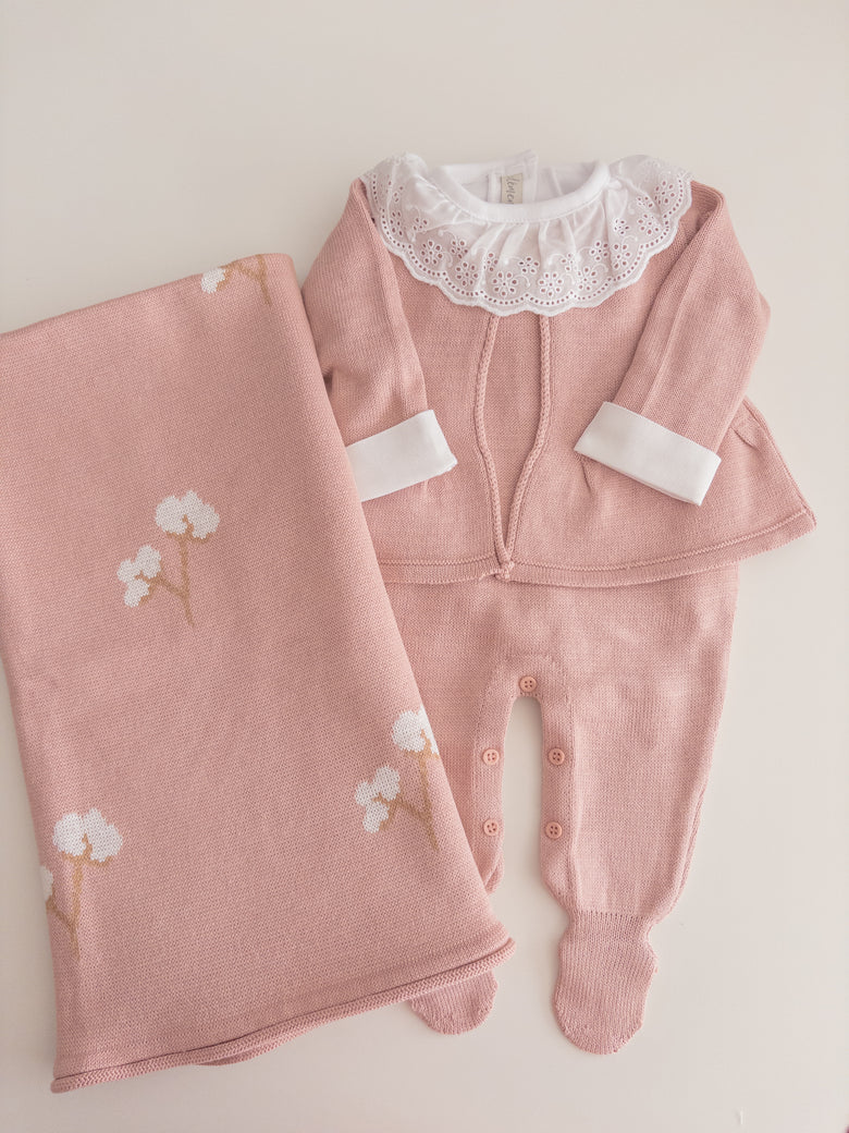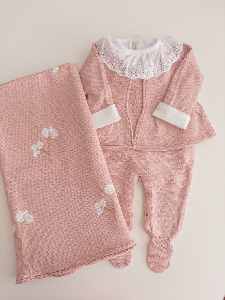 Complemented by a cozy blanket and a delicate bodysuit, each piece invites comfort and elegance, turning every moment into a delightful experience.