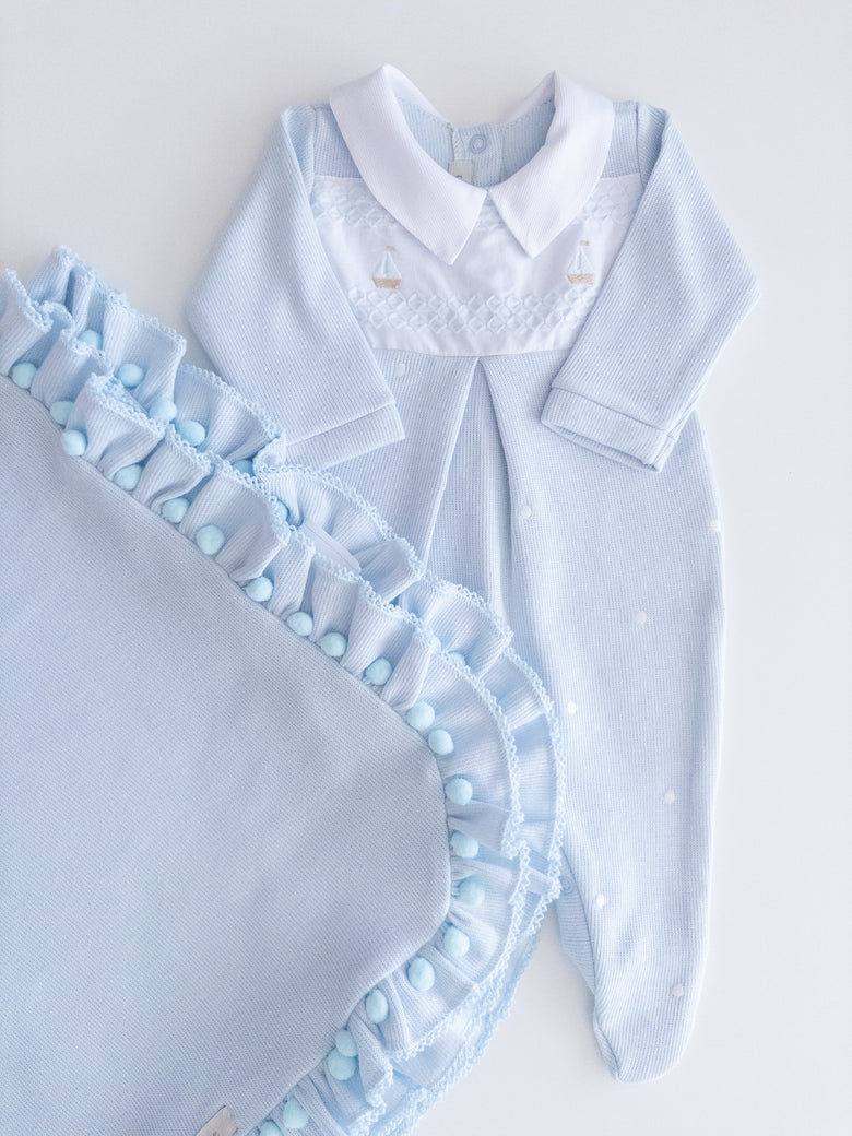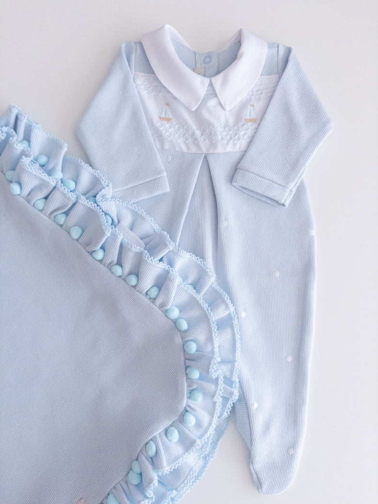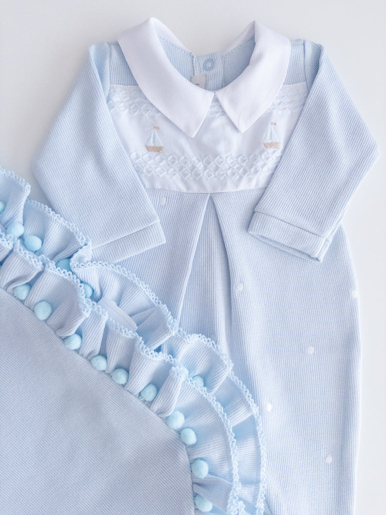 Romper and blanket made of 100% cotton.
