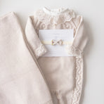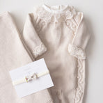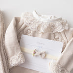 A charmingly woven piece — a true work of art in every thread. Each detail invites a gentle touch and offers unmatched comfort. A romper that blends beauty and functionality, perfect for special moments and everyday adventures.