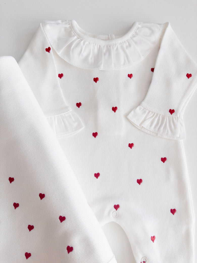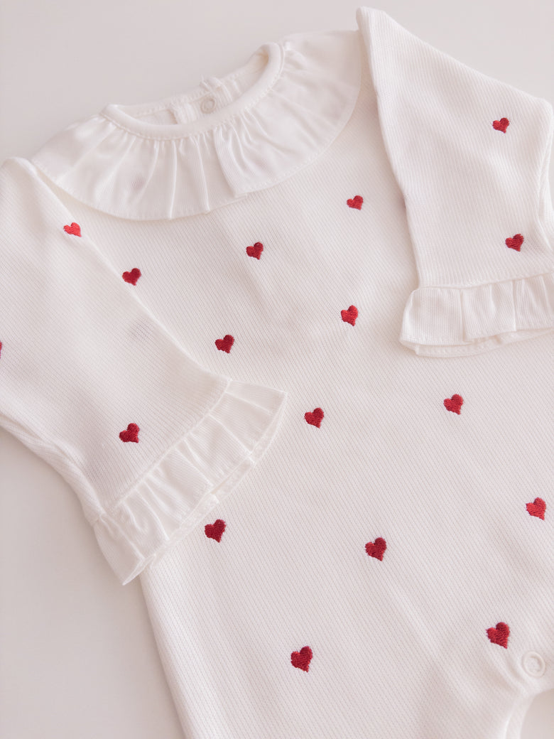 1 off-white Emma romper with red hearts