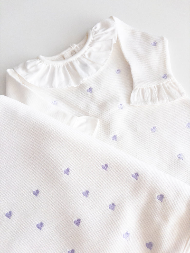 1 off-white Emma blanket with lilac hearts (80cm x 90cm)