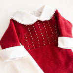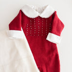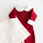 Lovingly handcrafted on a manual loom, this coming home set is delicately embroidered with pearls—making it the perfect choice for special moments and for wrapping your baby in love and elegance. The bodysuit can also be custom-embroidered to your preference upon request!