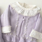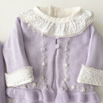 The little cardigan features rococo-style flowers in stunning shades that intertwine like a visual poem.
