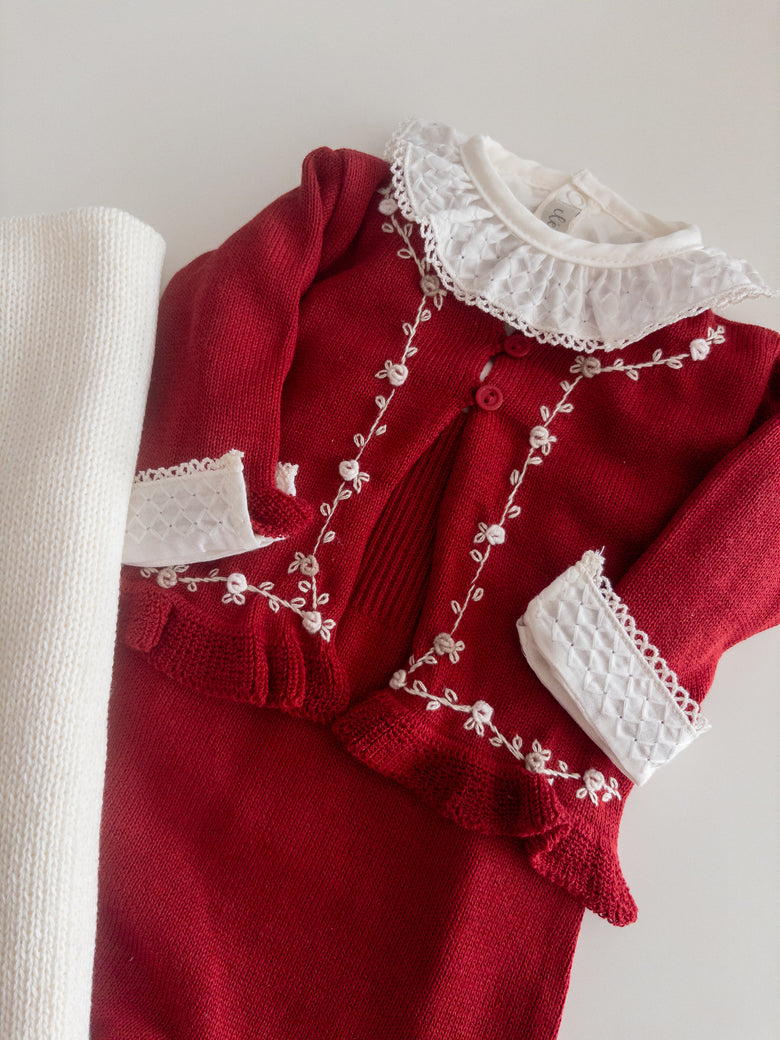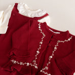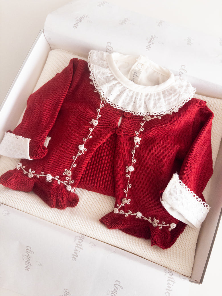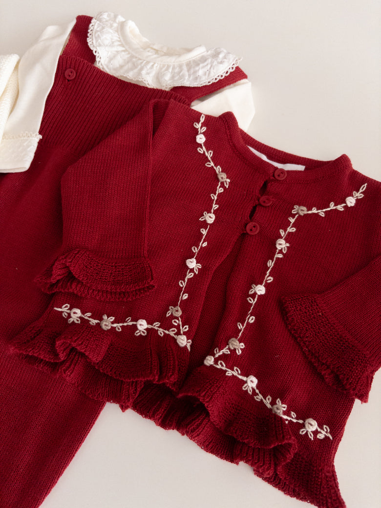 The cardigan features exquisite rococo-style embroidered flowers in stunning tones that intertwine like a visual poem.