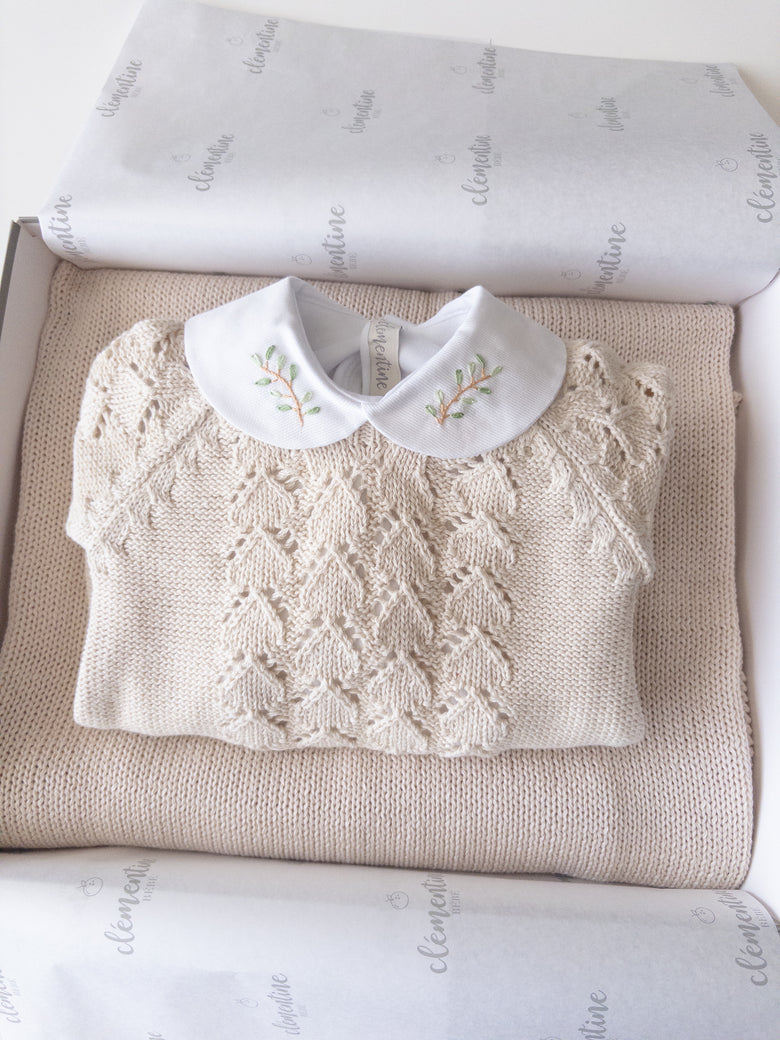 A unisex set with an enchanting knit pattern — a true work of art in every thread.