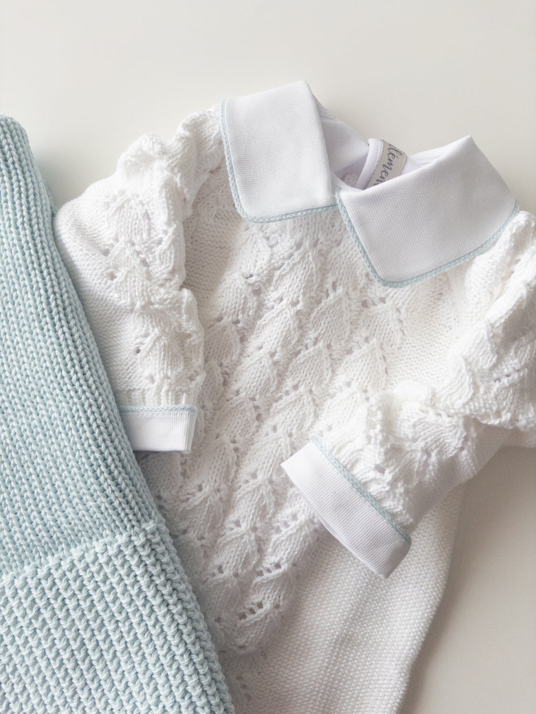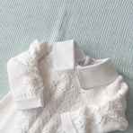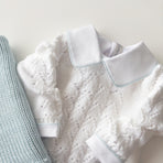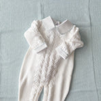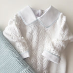A delicately woven piece — a true work of art in every thread. Each detail of the knit invites a gentle touch and offers unmatched comfort. A romper that blends beauty and functionality, perfect for special moments and everyday adventures.
