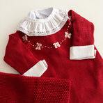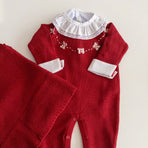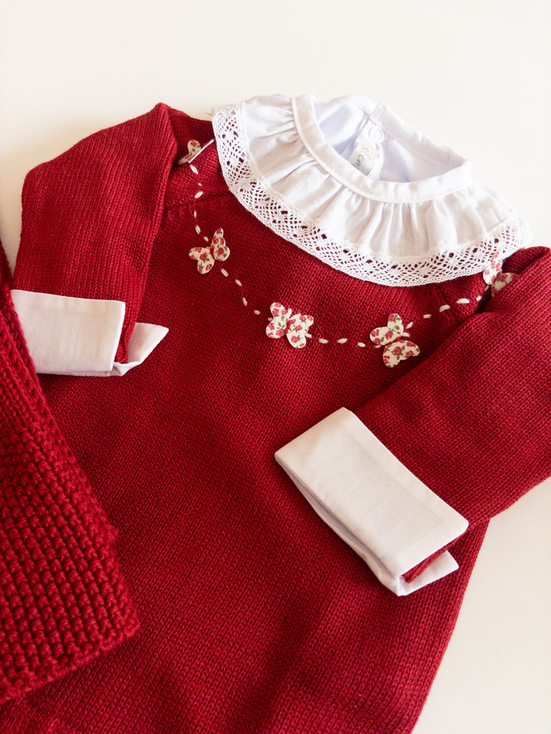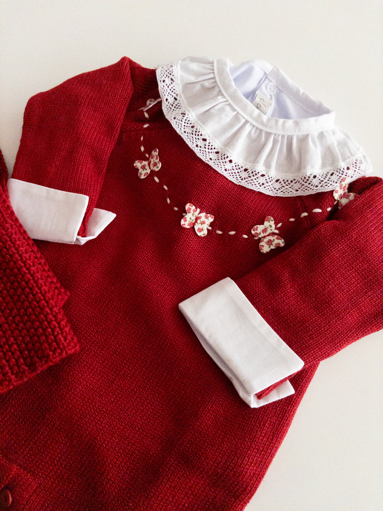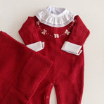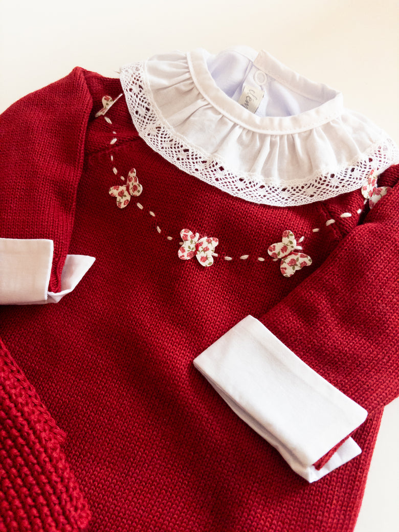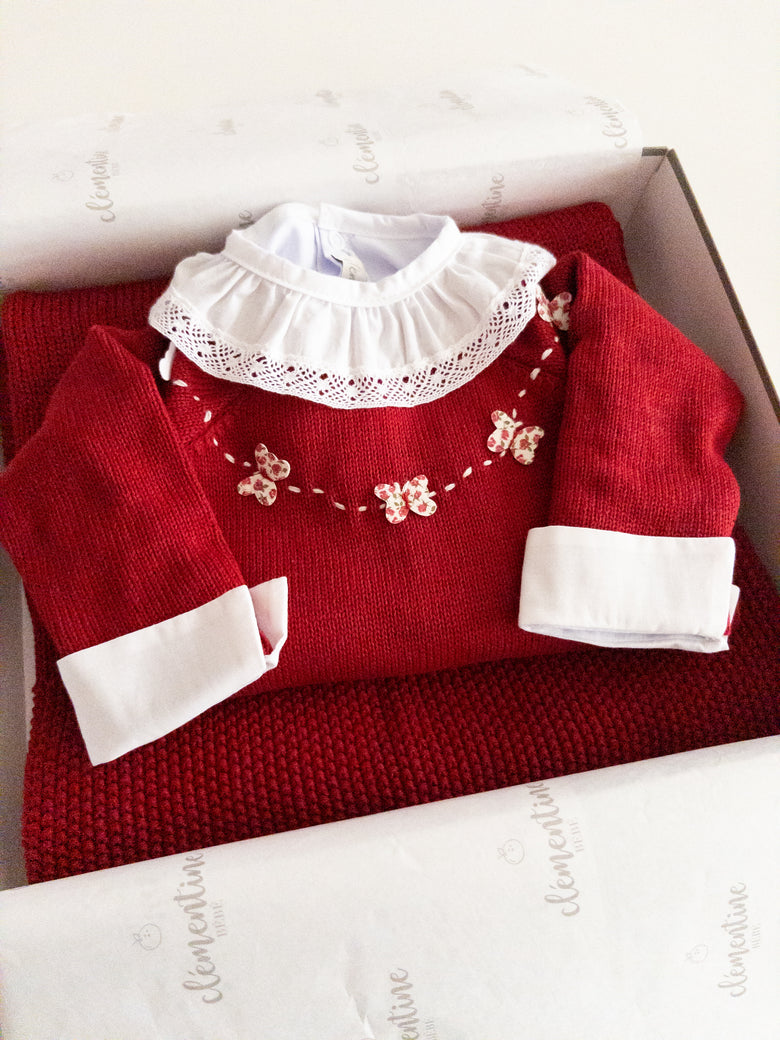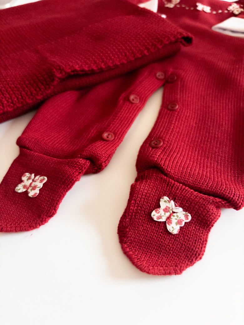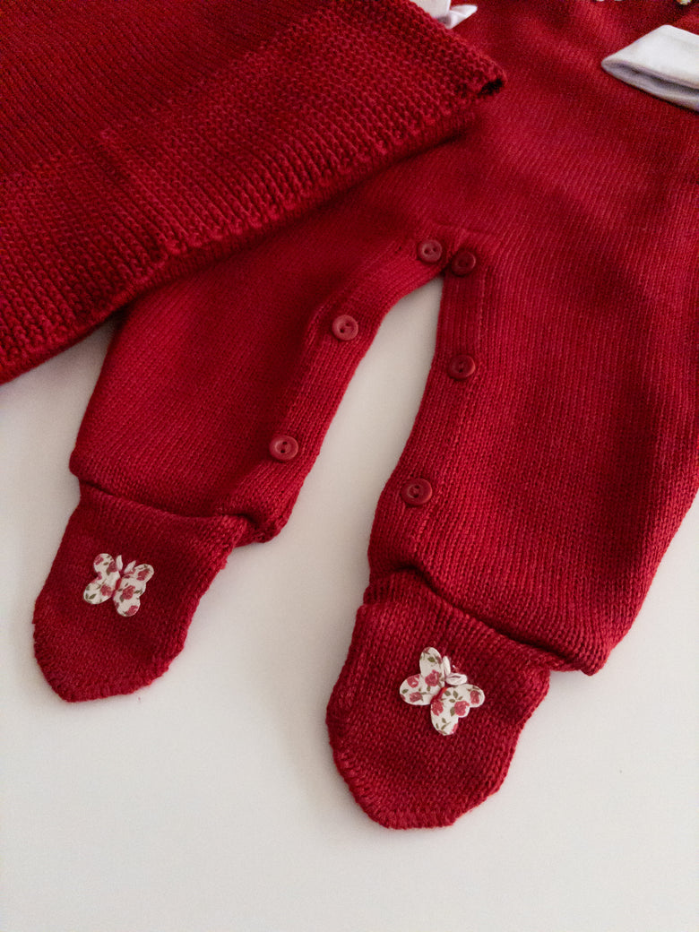 This beautiful set includes a soft knitted outfit featuring delicate butterfly embroidery, adding a gentle and elegant touch to the look. Paired with a lace-trimmed bodysuit made of 100% cotton, this maternity set creates a harmonious and charming ensemble for your baby's arrival. Perfect for making this special moment even more memorable, with elegance and love.