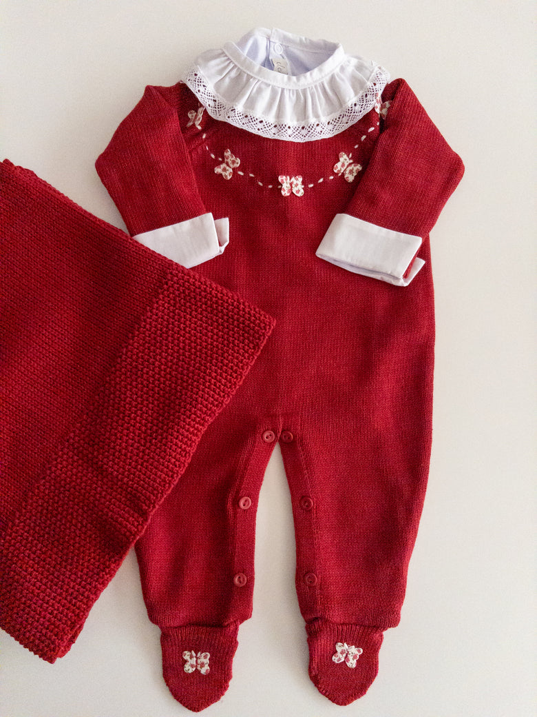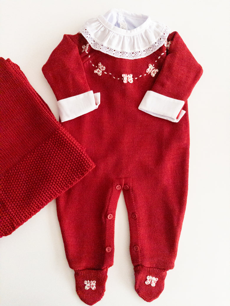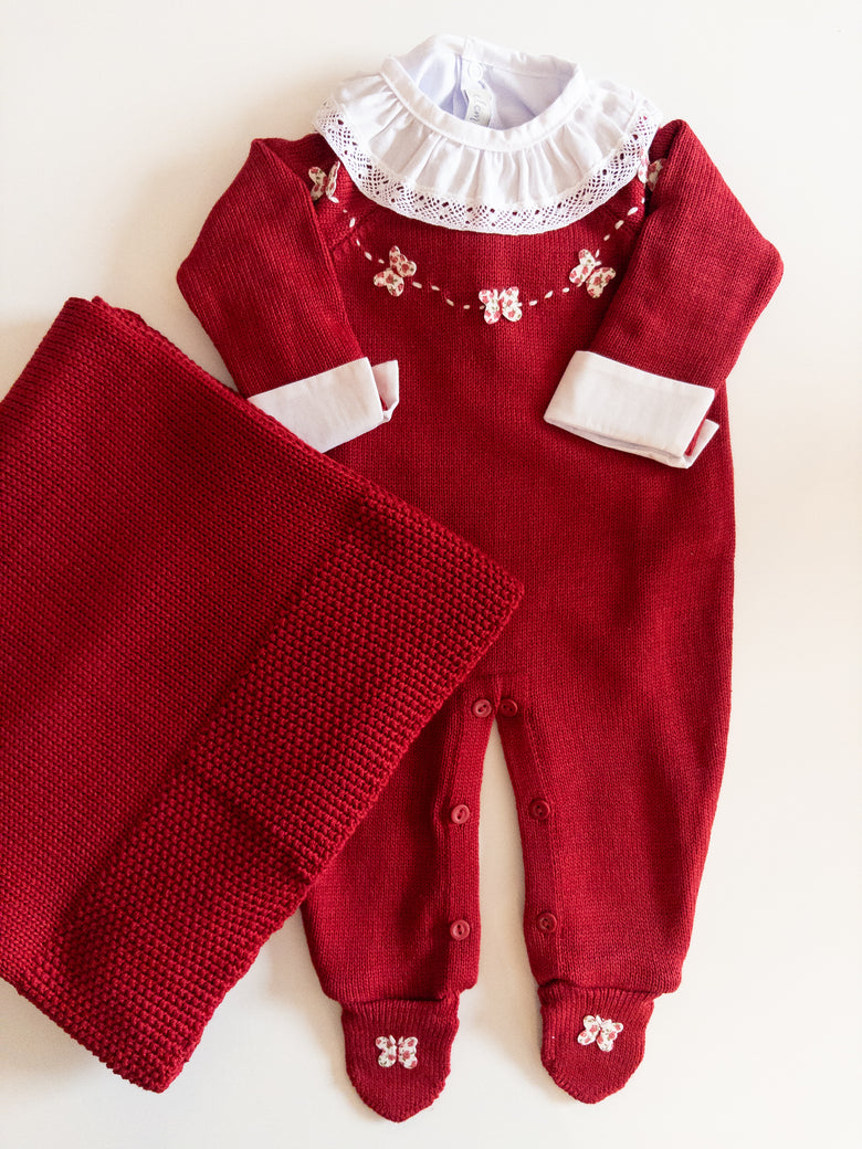 Solar Maternity Coming Home Set.This beautiful set includes a soft knitted outfit featuring delicate butterfly embroidery, adding a gentle and elegant touch to the look. Paired ...