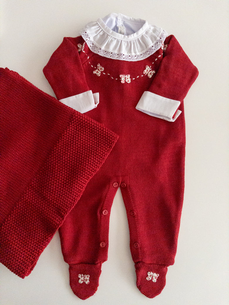 Ana Coming Home SetDelight everyone with the elegance and delicacy of our Ana coming home set, crafted from 100% cotton. The set includes a footie and a blanket, both delicately embroidered with fl...