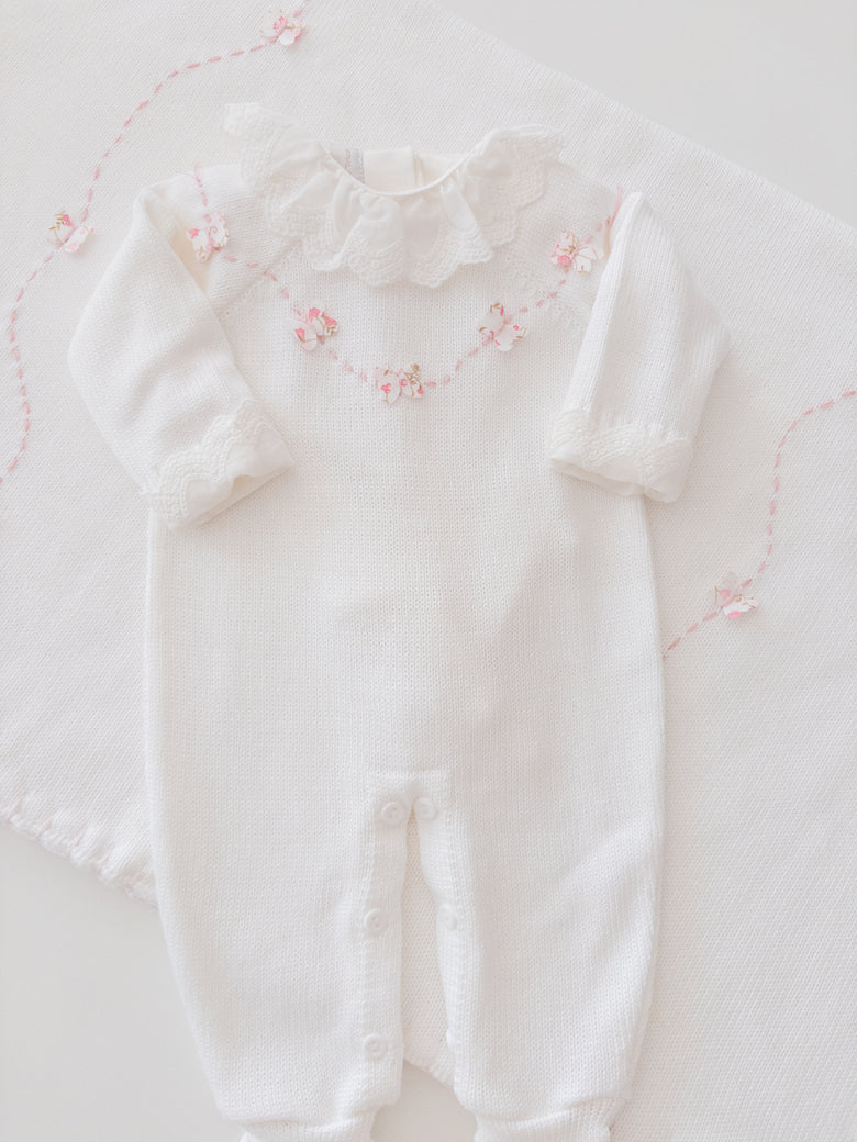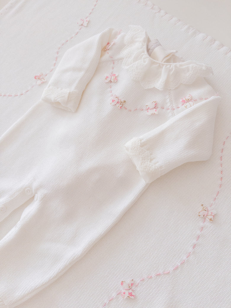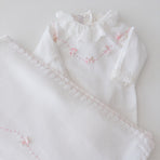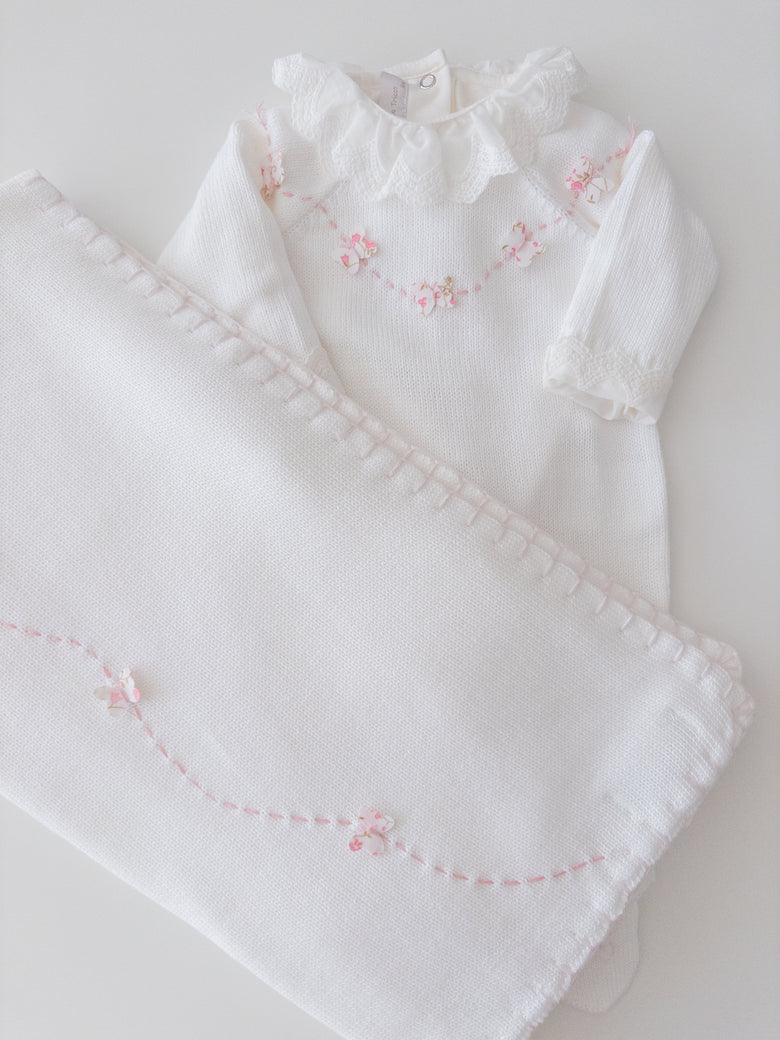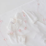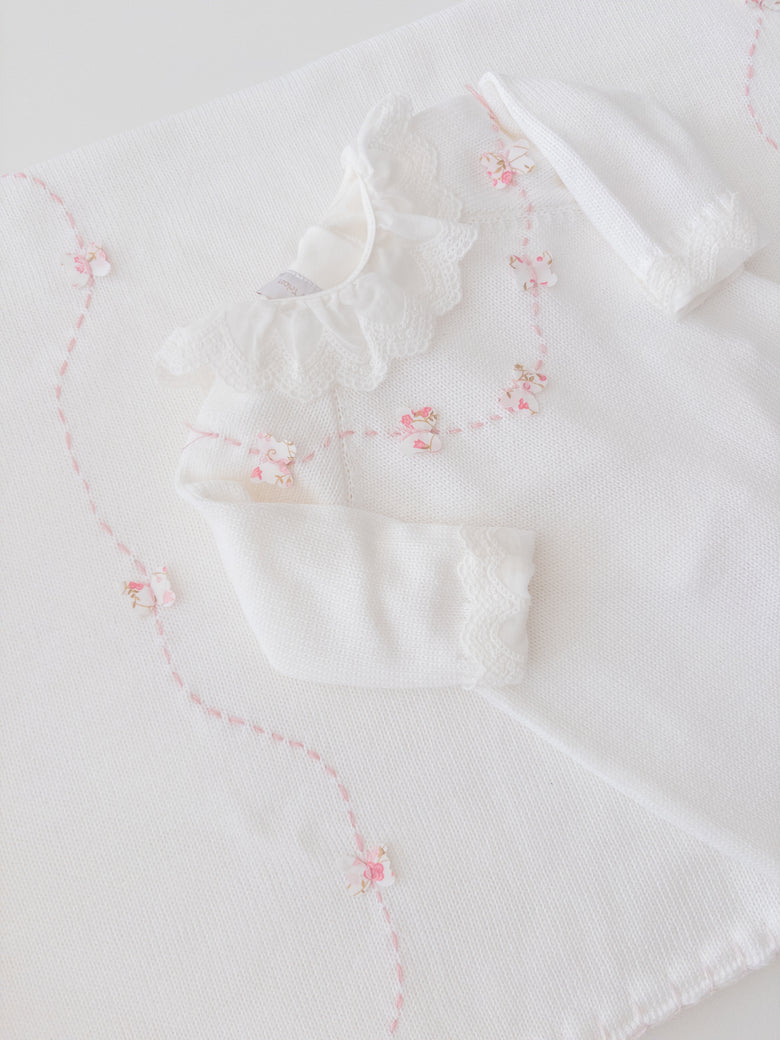 This carefully coordinated coming home outfit creates a harmonious and enchanting look for your baby's arrival—perfect for making this special moment even more elegant and filled with love.
