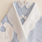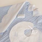 Bodysuit, mini blanket, and bib composition: 100% cotton.