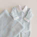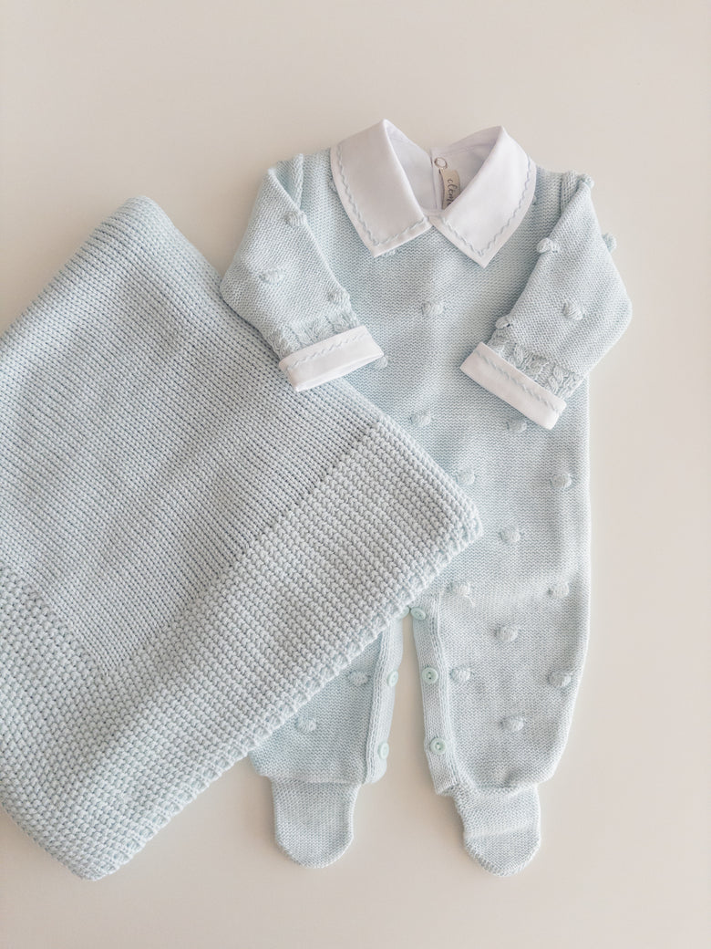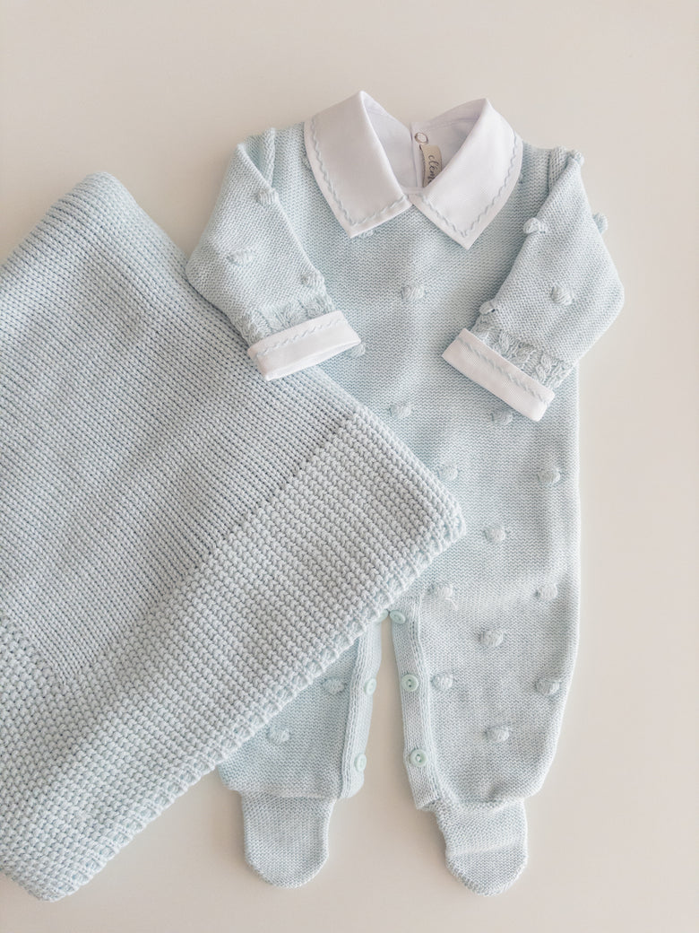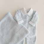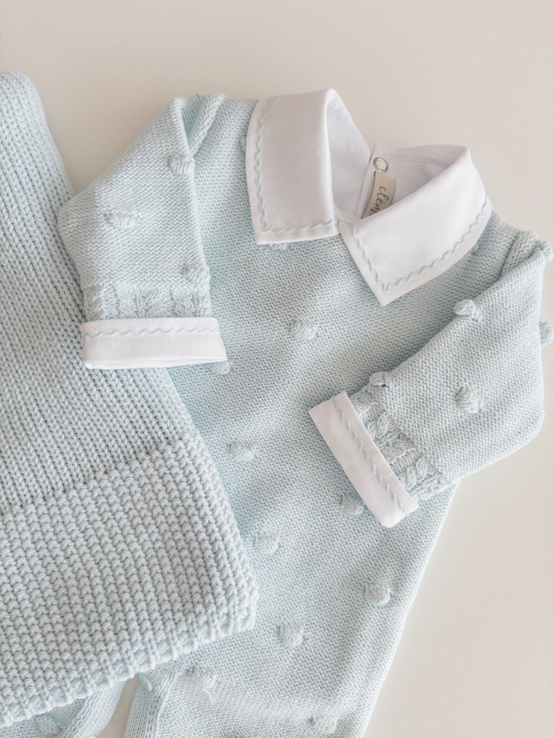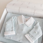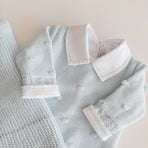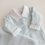 Delicately knitted jumpsuit, beautifully embroidered with tiny dots for a sweet and charming touch. Lovingly crafted with attention to every detail, this jumpsuit is the perfect blend of comfort and style. Your baby will feel cozy and look adorable on any occasion, while the soft knit gently embraces their skin. A delightful piece to add to your baby's wardrobe, sure to enchant with its timeless beauty.