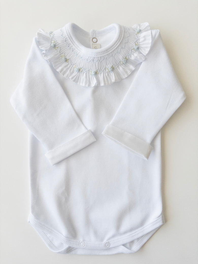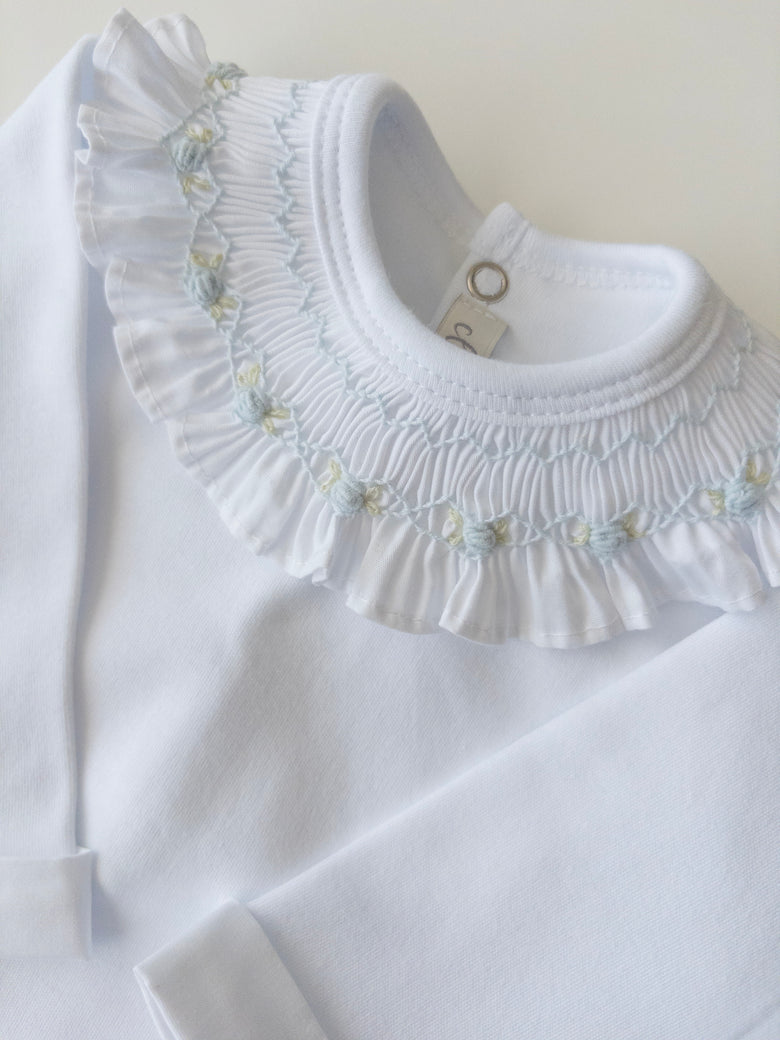 Features delicate Rococo smocking embroidery on the collar — simply perfect!