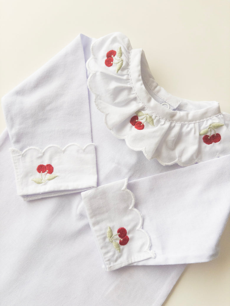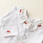 This bodysuit is made from soft, breathable fabric to keep your baby comfortable all day long. The embroidered collar adds a touch of sophistication and sweetness, bringing charm and a timeless, elegant look. Perfect for any occasion, this bodysuit is a symbol of comfort and style. A lovely addition to your little one’s wardrobe.