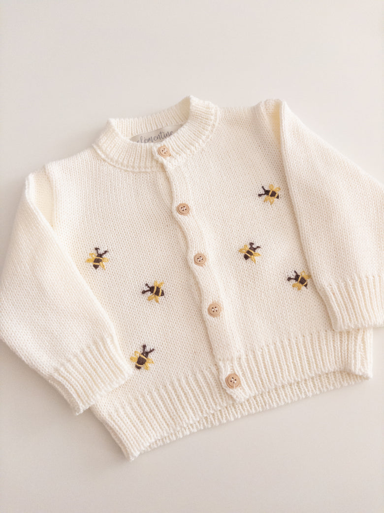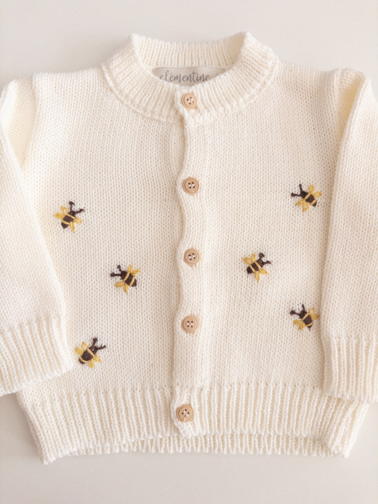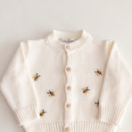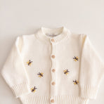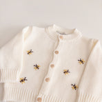 The “Little Bees Cardigan” is that special touch of love that completes any outfit! With adorable little bee details and easy-to-close buttons, it combines practicality and charm in a single piece. Carefully crafted, it’s perfect for keeping your baby comfortable without sacrificing style. A light, cheerful cardigan full of personality — as sweet as its name!