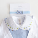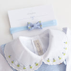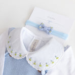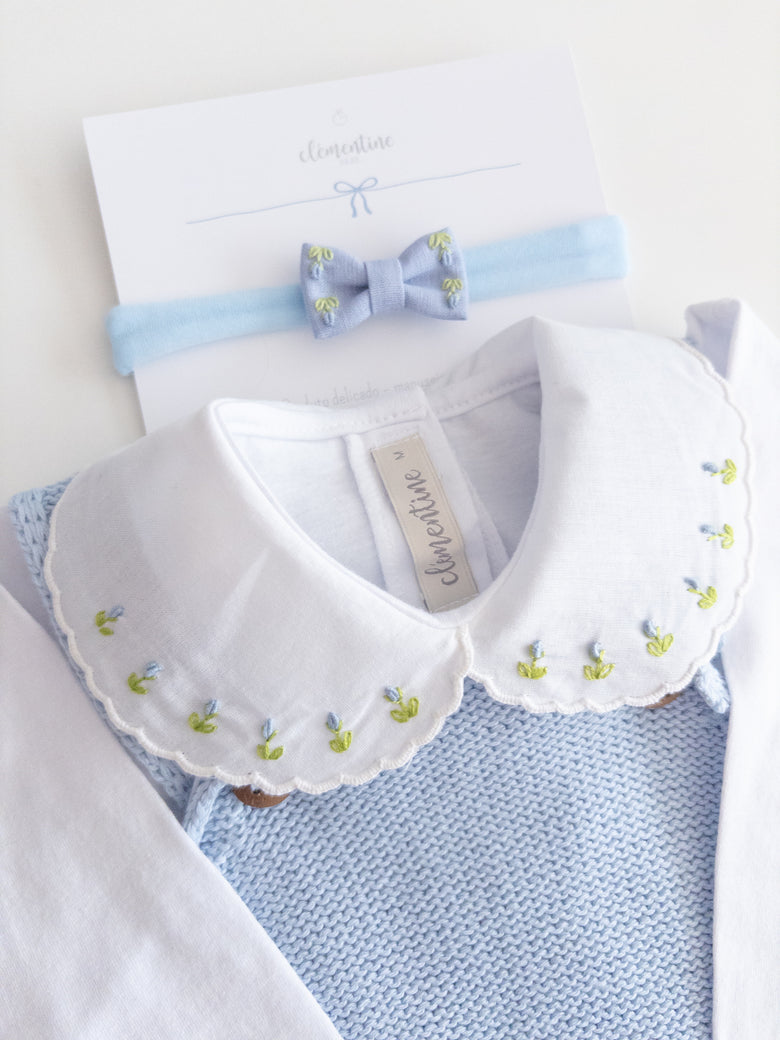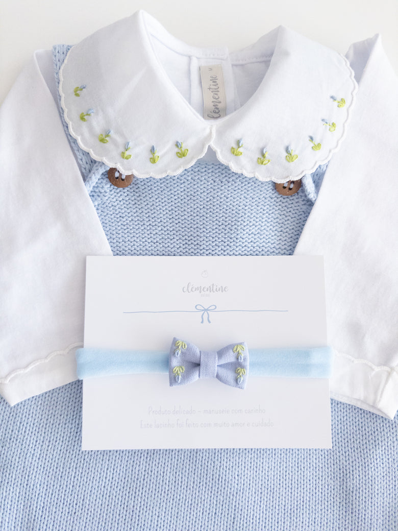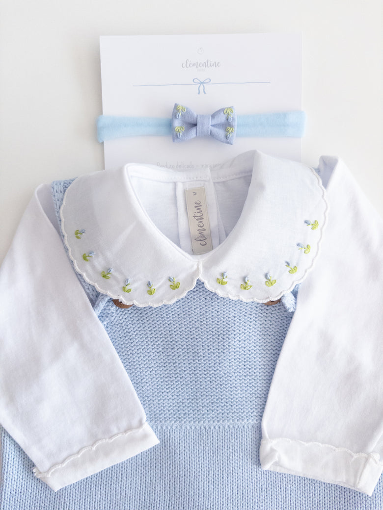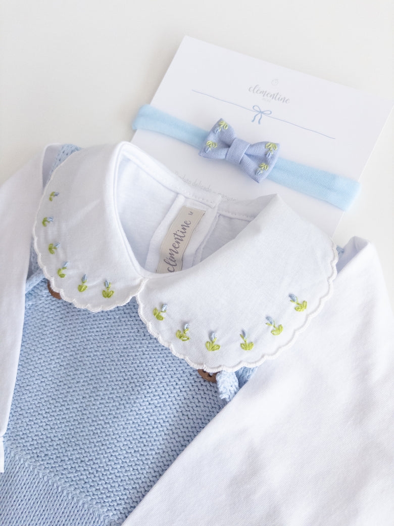 Be enchanted by the elegance and delicacy of this beautiful Acerola romper, perfect for special occasions or for adding a touch of sophistication to everyday life. Made from soft, breathable knit, it ensures total comfort for your little one. The design features delicate pearls adorning the front along with a bow, adding an extra touch of charm. A comfortable shoulder fit and practical button closure make dressing and changing easy. This romper is the ideal choice for those seeking style and comfort in every detail. The final touch is the floral-embroidered bodysuit. Perfect!