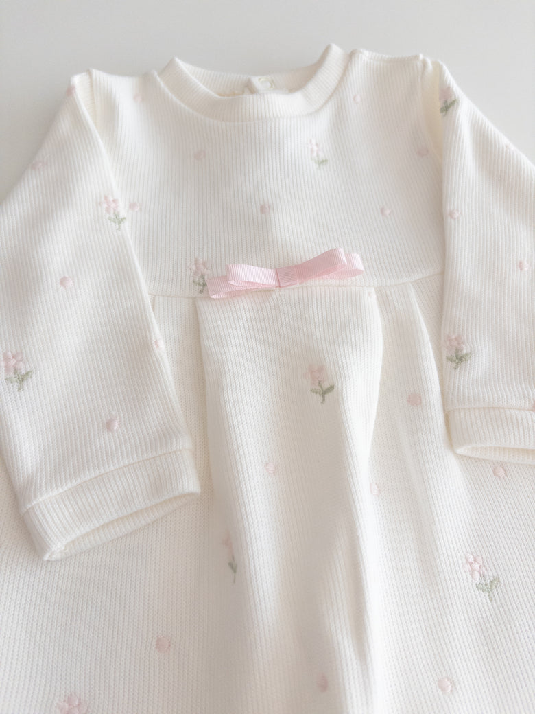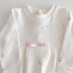 Beautifully decorated with floral embroidery that evokes purity and tenderness, every detail has been thoughtfully selected. This romper offers both comfort and style, ensuring your baby stays cozy and beautifully dressed. Perfect for unforgettable first impressions and cherished memories — an ideal choice for those very first moments.
