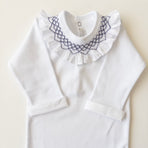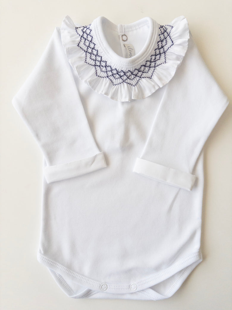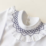 Bodysuit featuring smocking embroidery on the collar. Simply perfect!