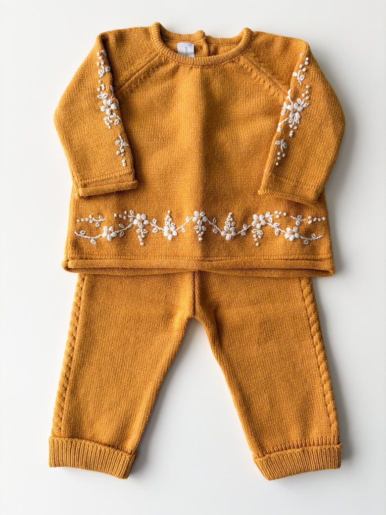 Charming set of pants and button-up cardigan – the perfect choice for both style and comfort.