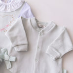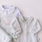 Paired with a beautiful cotton bodysuit, this set provides all-day comfort for delicate skin. The bodysuit's detailing adds a touch of elegance and charm, perfect for special occasions or everyday wear.