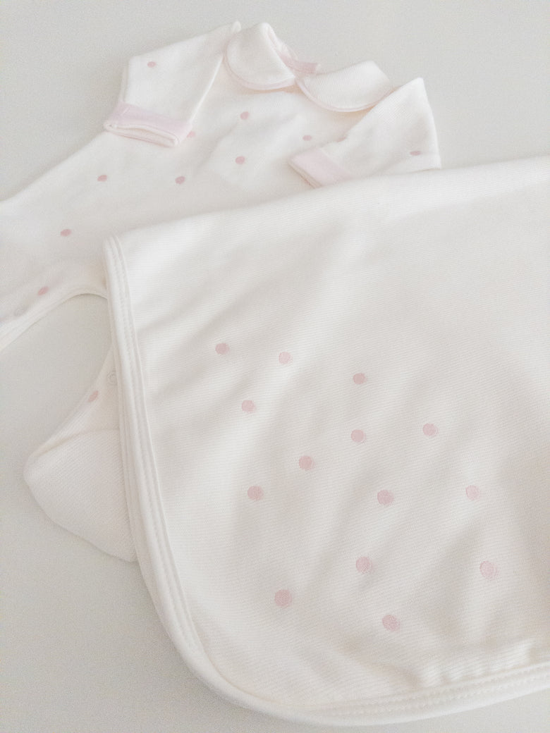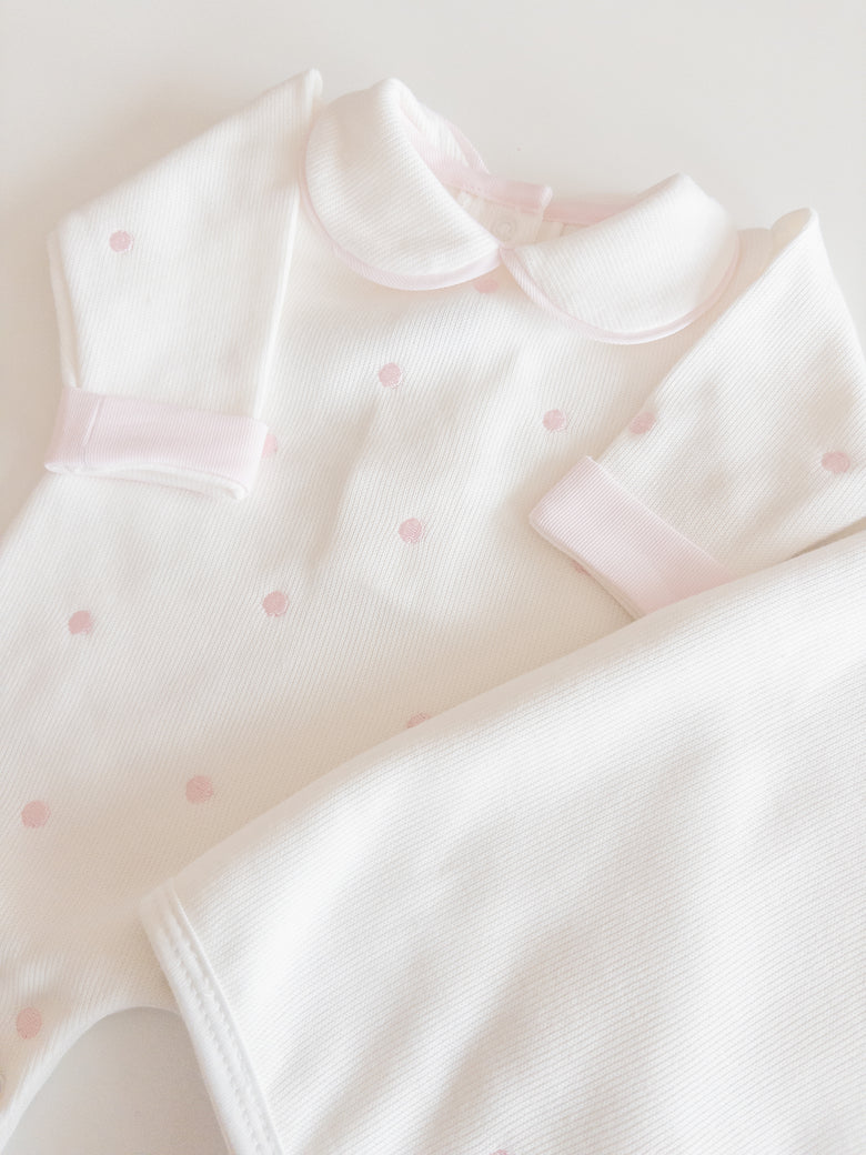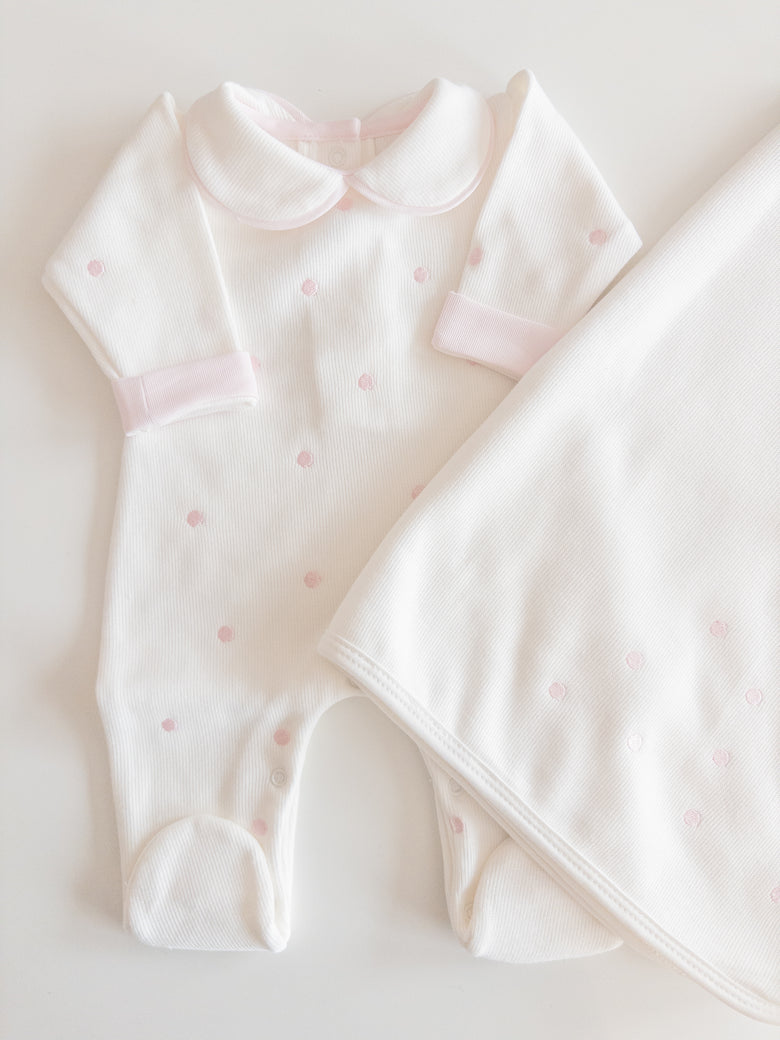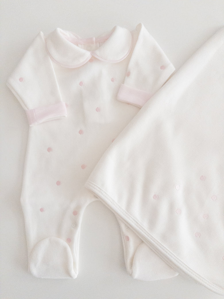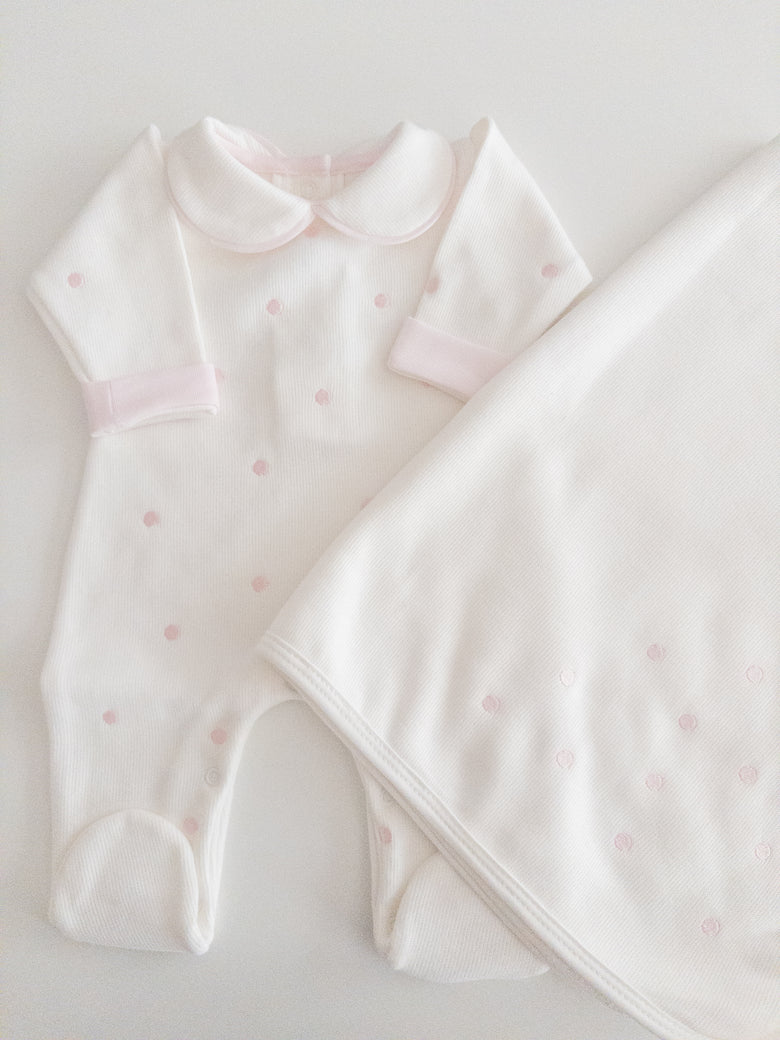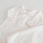 Cotton romper delicately embroidered with tiny dots for a sweet, charming touch.