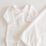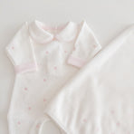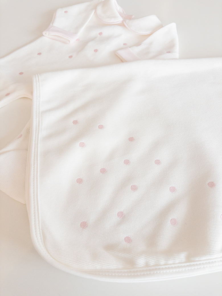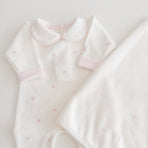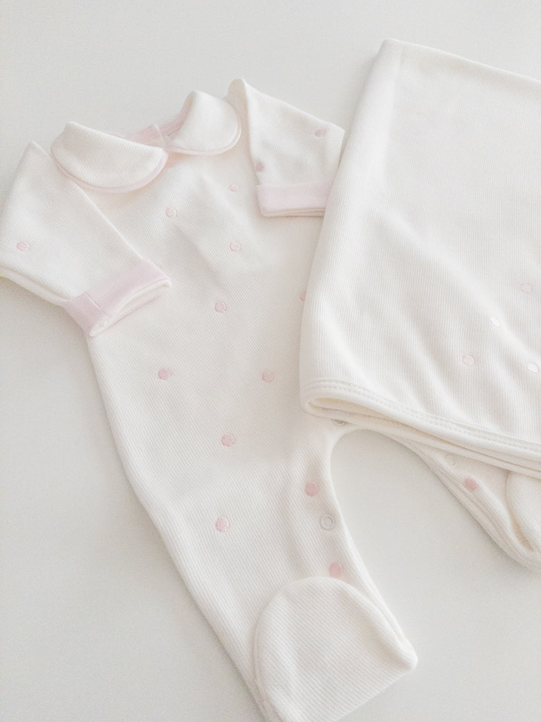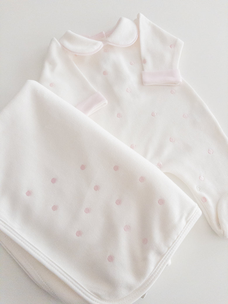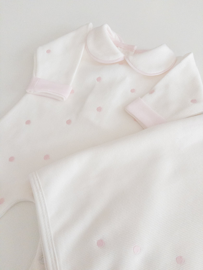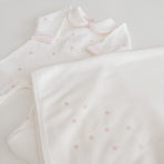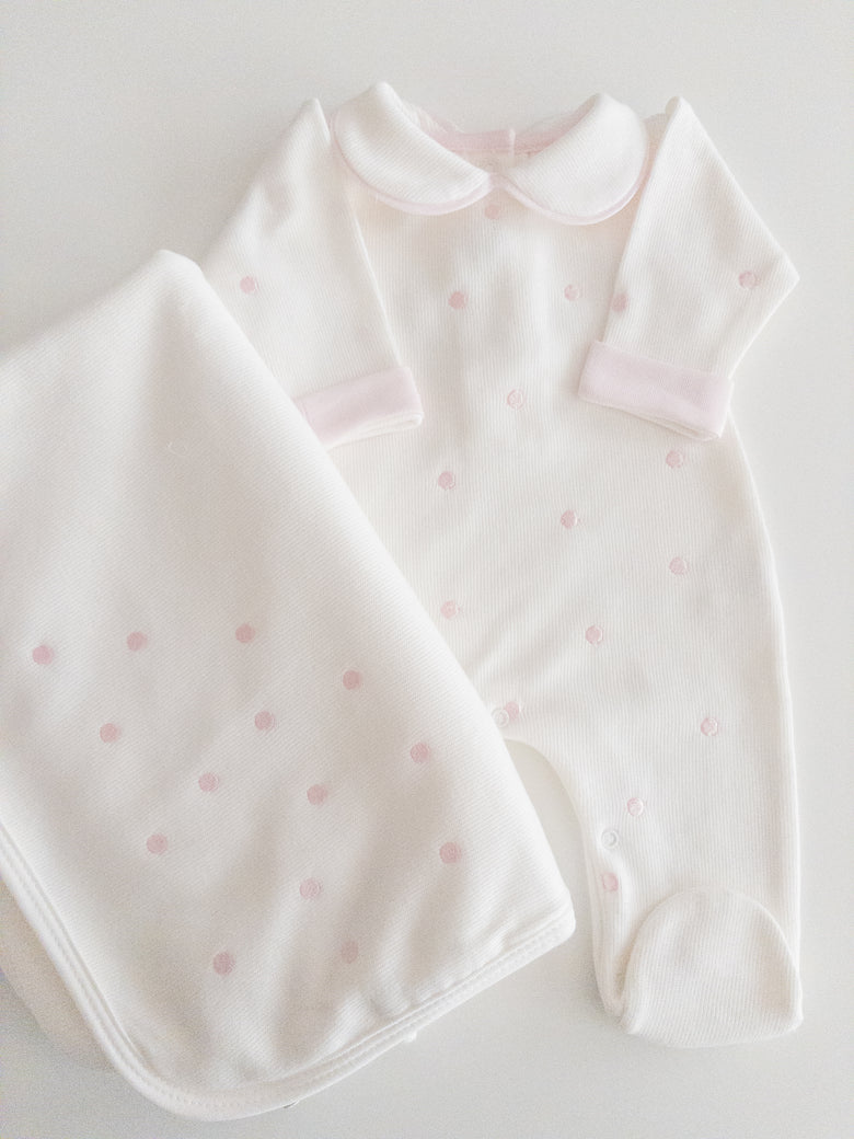 Cotton romper delicately embroidered with tiny dots for a sweet, charming touch.
