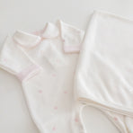 Lovingly made with attention to detail, this romper is the perfect blend of comfort and style. Your baby will feel cozy and look adorable on any occasion, while the soft knit gently hugs their skin. A timeless and delightful piece to add to your baby’s wardrobe — sure to enchant everyone with its classic beauty.