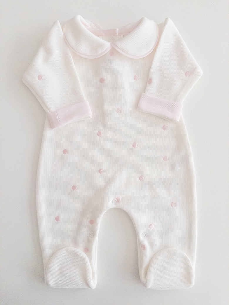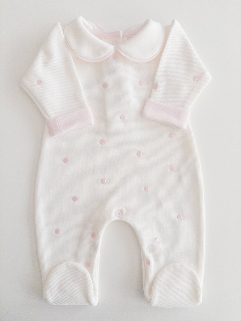 Cotton romper delicately embroidered with tiny dots for a sweet, charming touch.