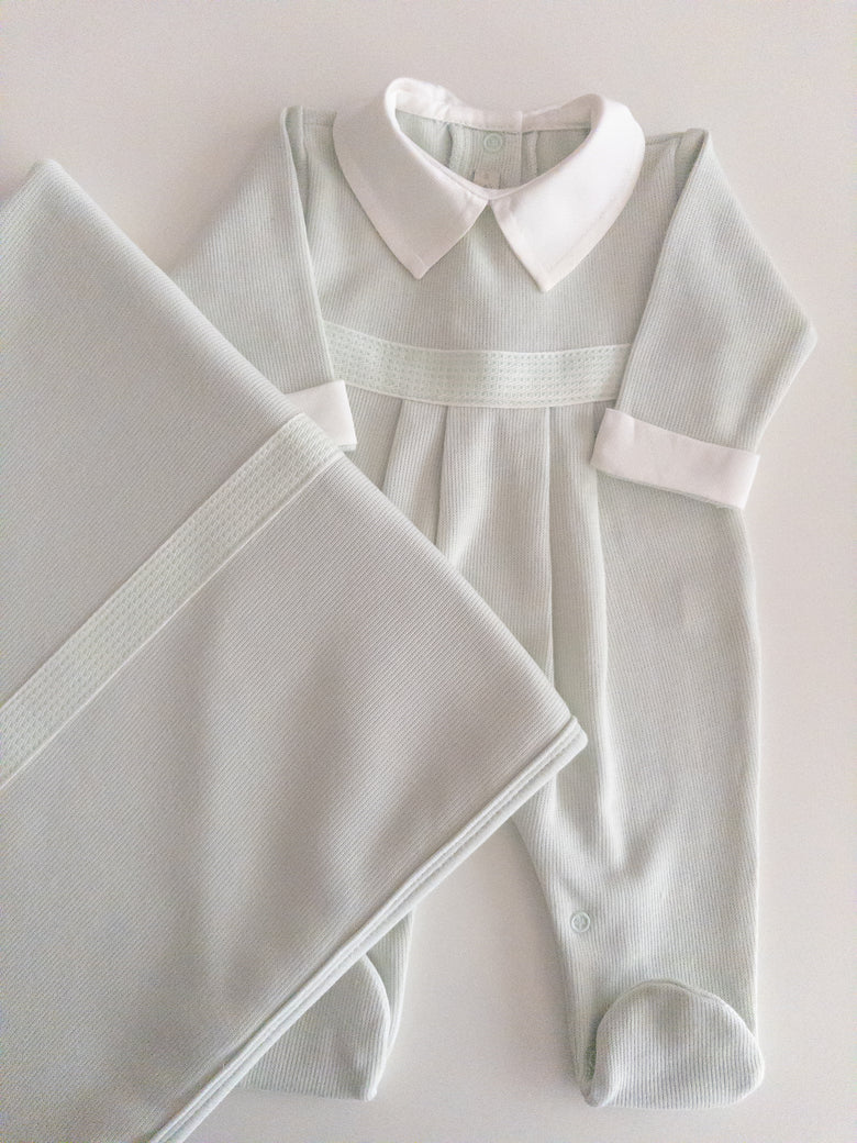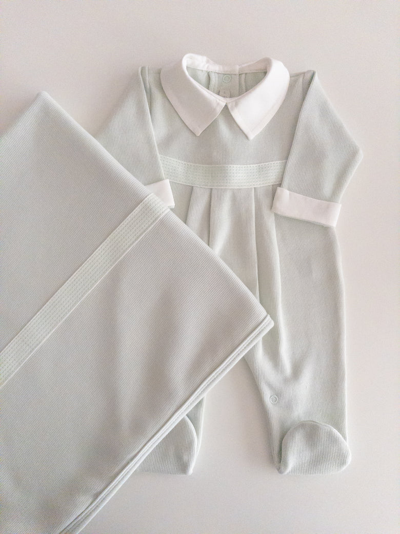Fabric composition (jumpsuit & blanket): 100% cotton.