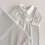 Stand out with the delicately striped white pattern on the chest, adding a touch of sophistication and charm. This jumpsuit is ideal for special moments, creating lasting memories of such a unique and meaningful time in your family's life.