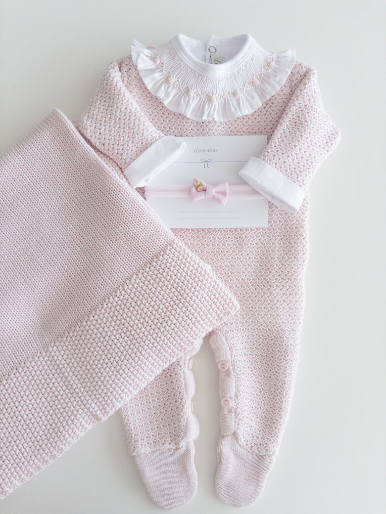 • 1 smocked (honeycomb-stitched) bodysuit;