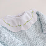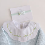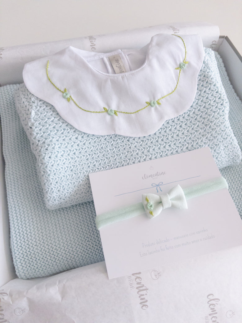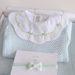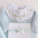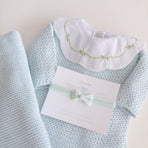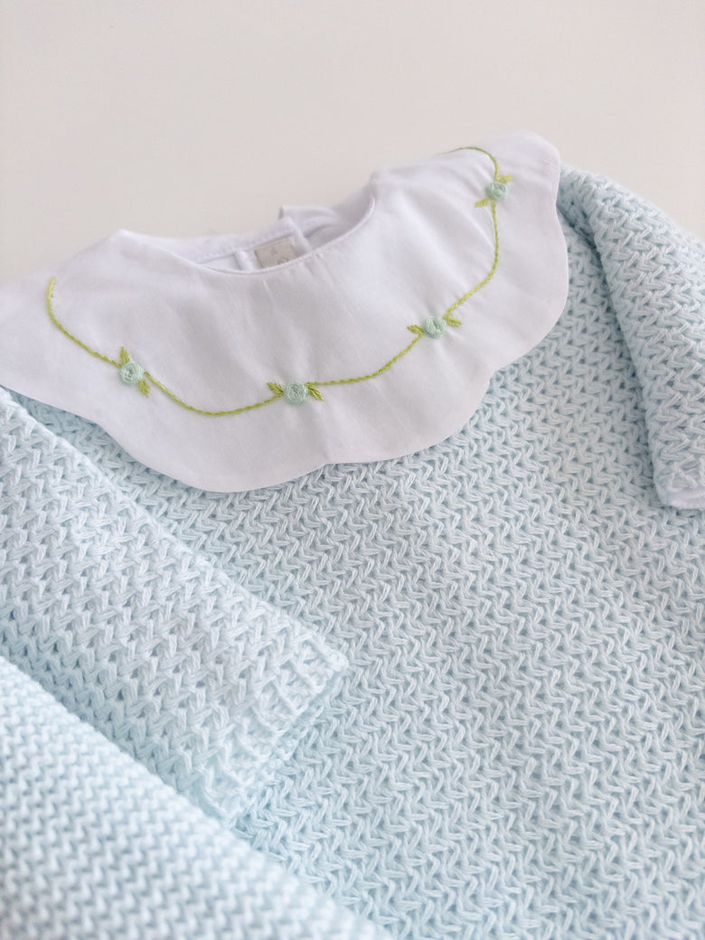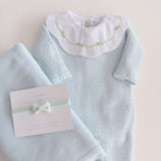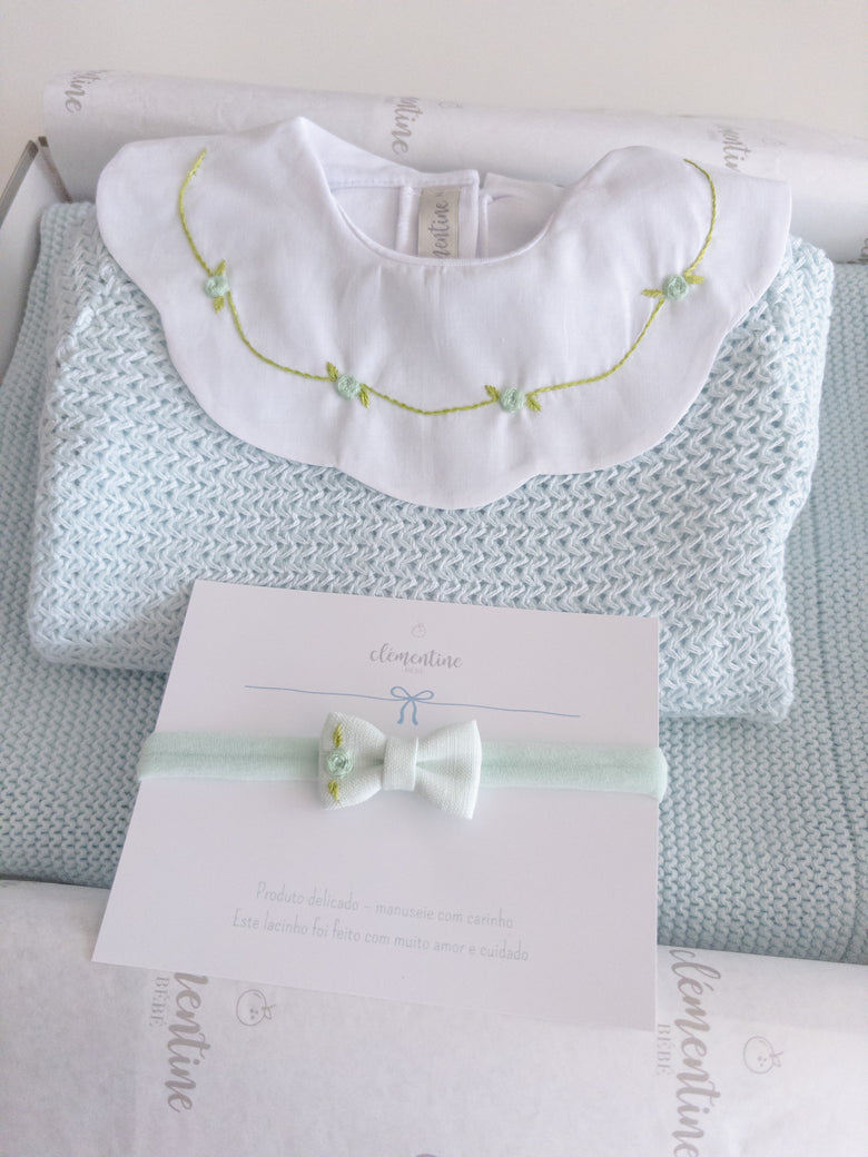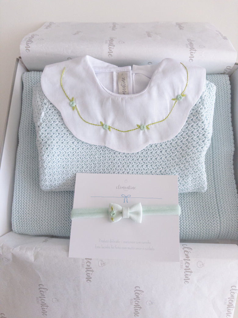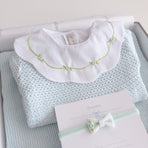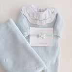 A charming Netuno maternity outfit. A knitted jumpsuit designed with a more open and breathable weave, adding a touch of elegance and sophistication to your baby’s look. Made with soft and breathable fabrics, providing maximum comfort for the newborn. Accompanied by a beautiful cotton bodysuit, featuring a honeycomb collar that adds a touch of sophistication and sweetness, standing out with its intricate pattern reminiscent of honeycombs. Besides adding charm, the collar also provides a classic and elegant appearance.