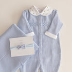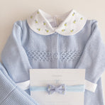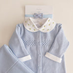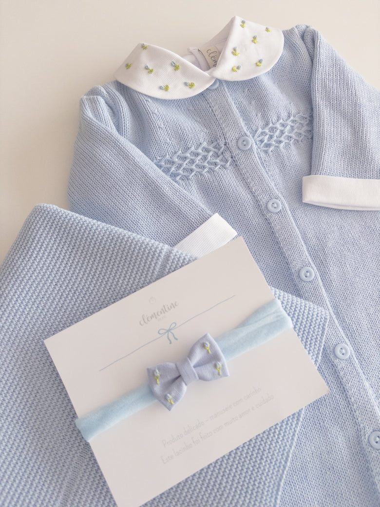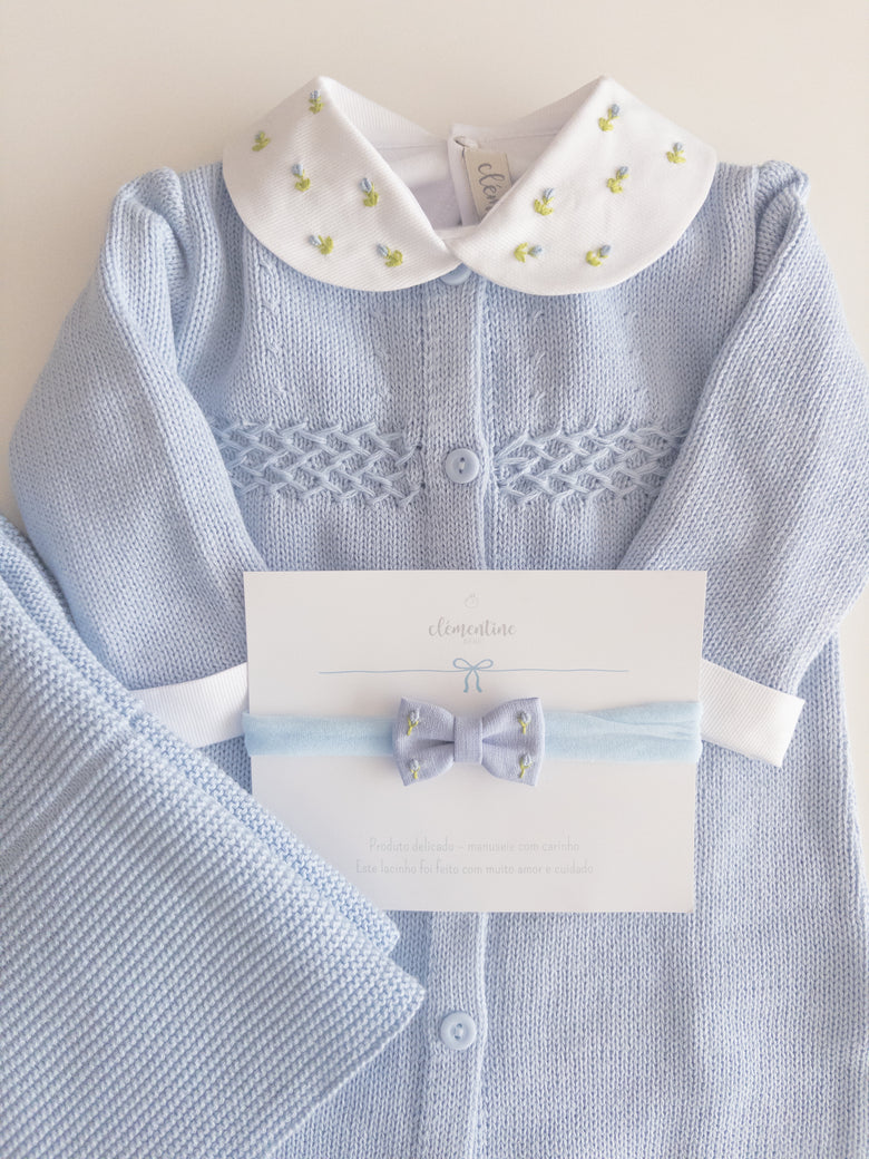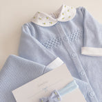 Knitted romper adorned with delicate embroidery and charming buttons on the front. This romper is a perfect fusion of style and practicality, offering an adorable look and functionality for precious moments with your baby. The bodysuit features flower and bee embroidery that adds a touch of sweetness and charm, while the front buttons make dressing and changing easier.