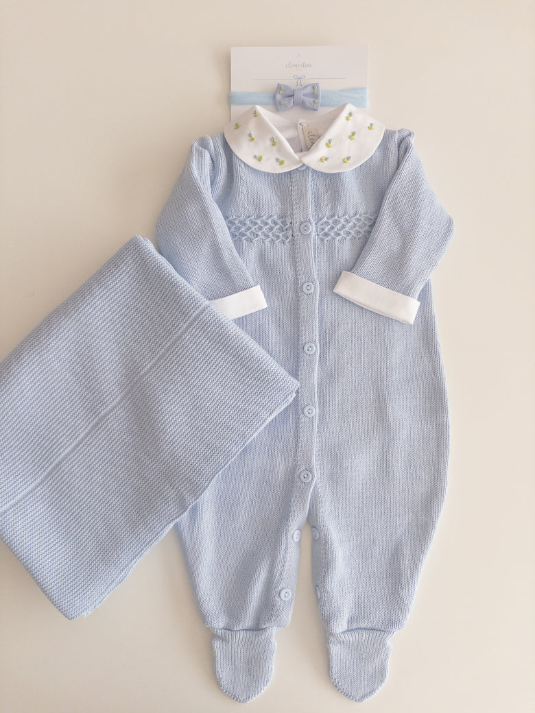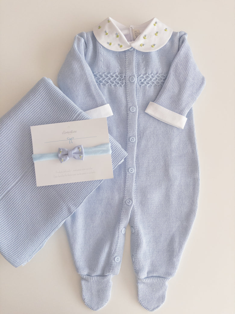 • 1 light blue Salvia romper;