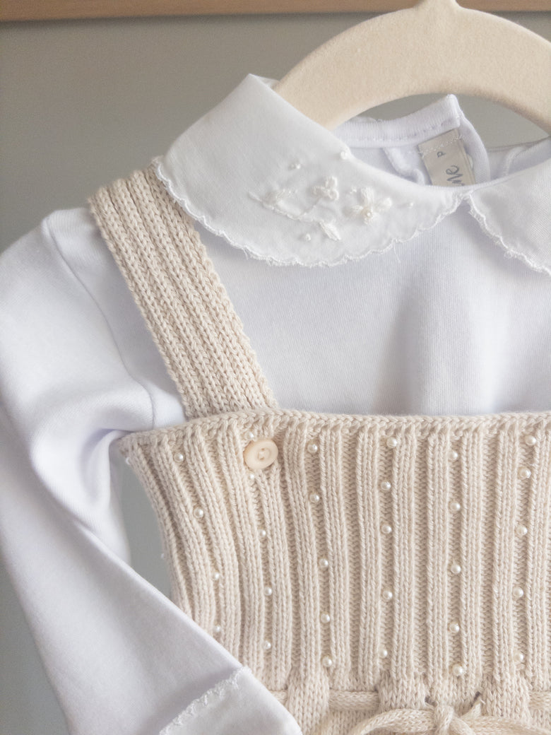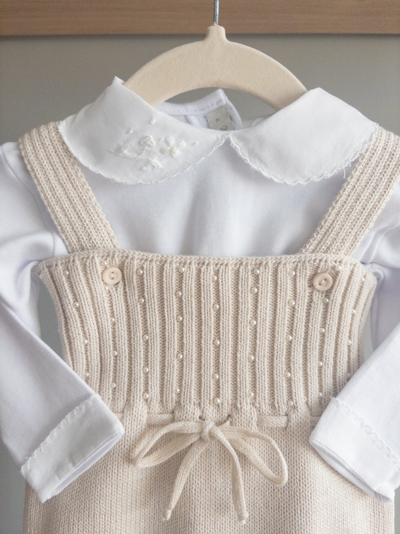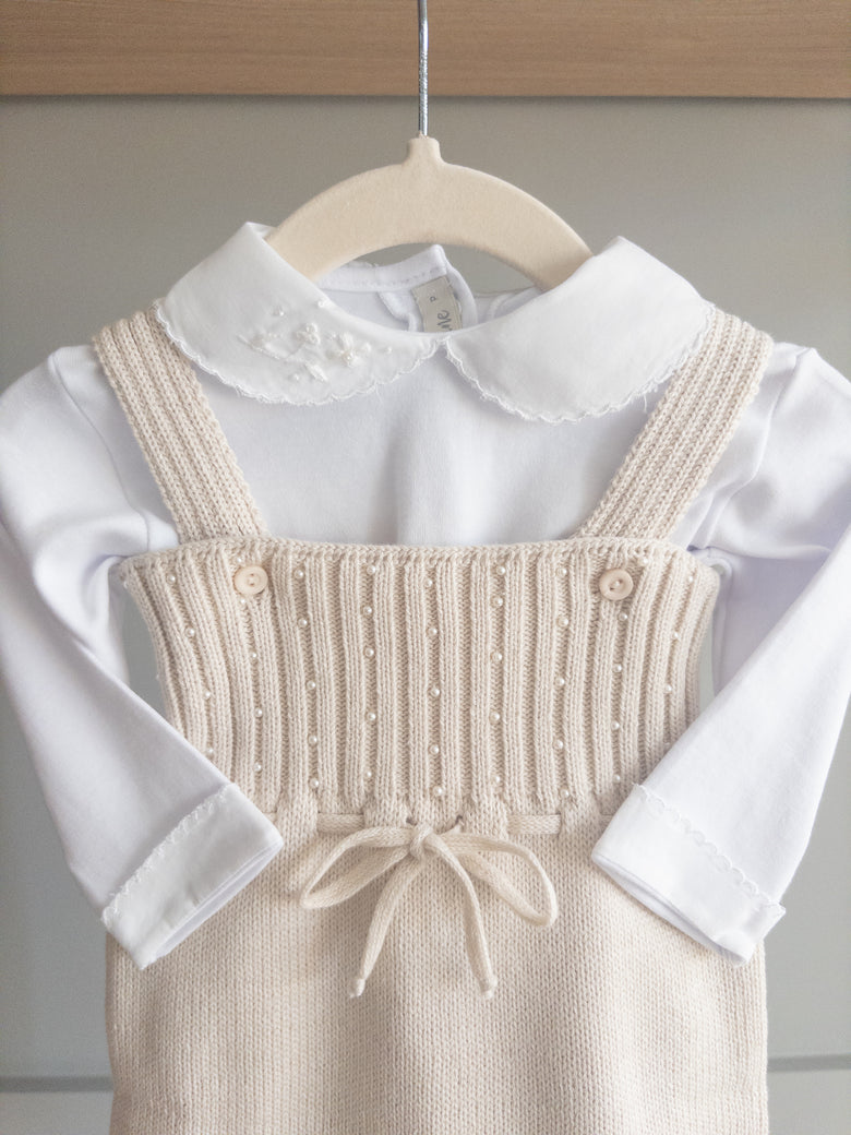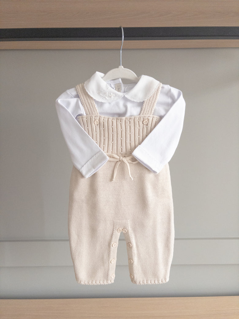Fall in love with the elegance and delicacy of this beautiful "Terra" knit overall, perfect for special occasions or for adding a touch of sophistication to everyday wear. Made from soft, breathable knit fabric, it ensures complete comfort for your little one.