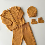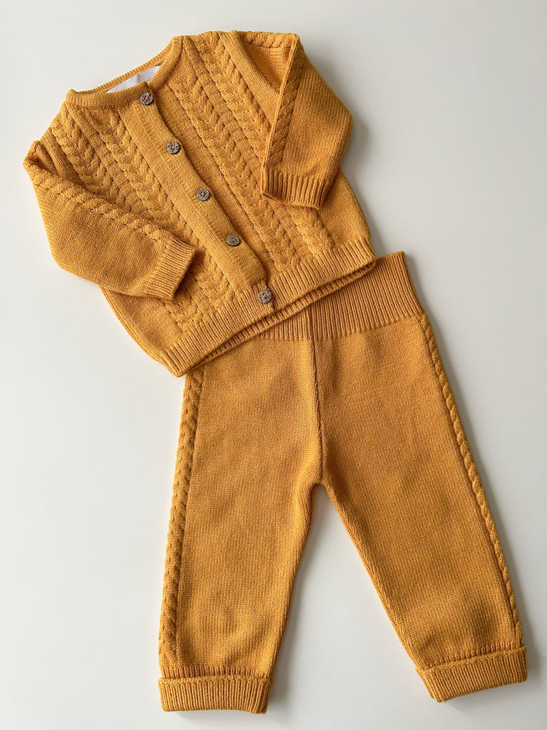 Charming set of pants and button-up cardigan – the perfect combination of style and comfort.